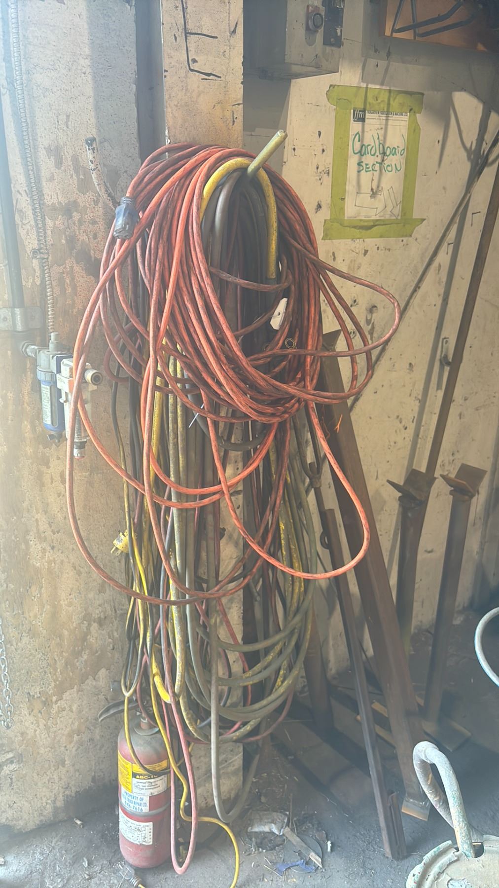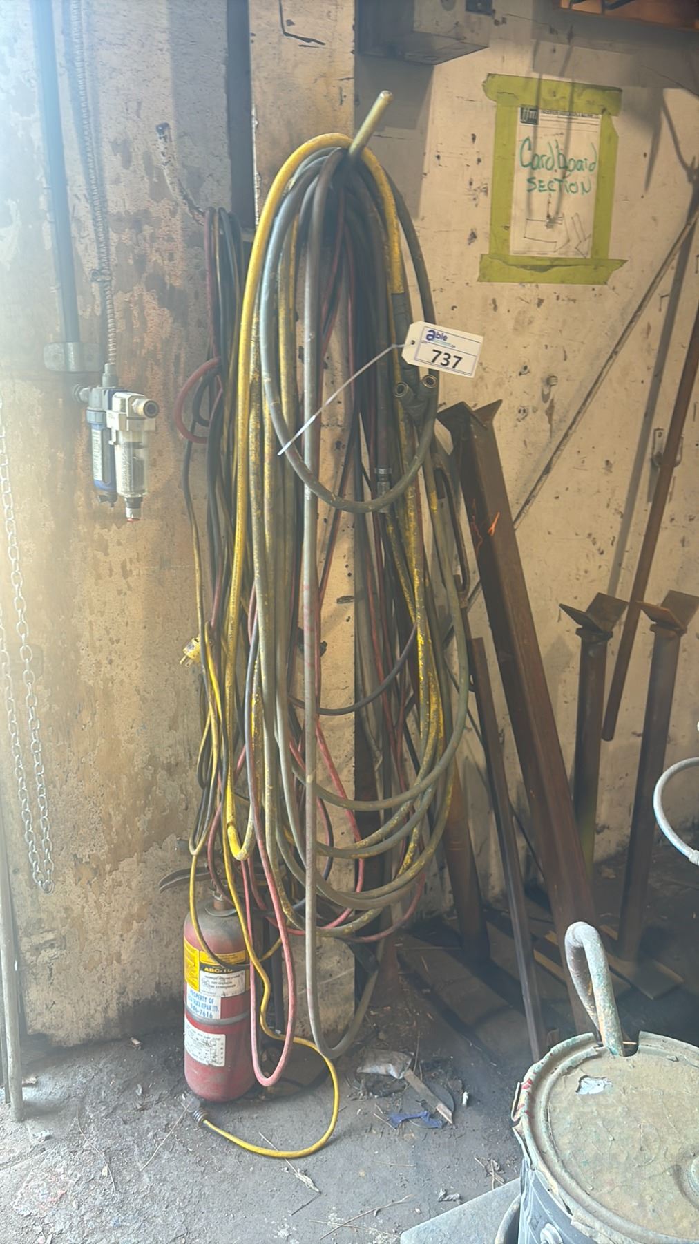 MISCELLANEOUS LOT OF AIR LINE EXTENSION CORDS & METAL MATERIAL STANDS
