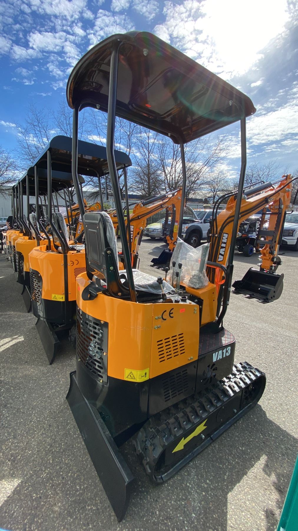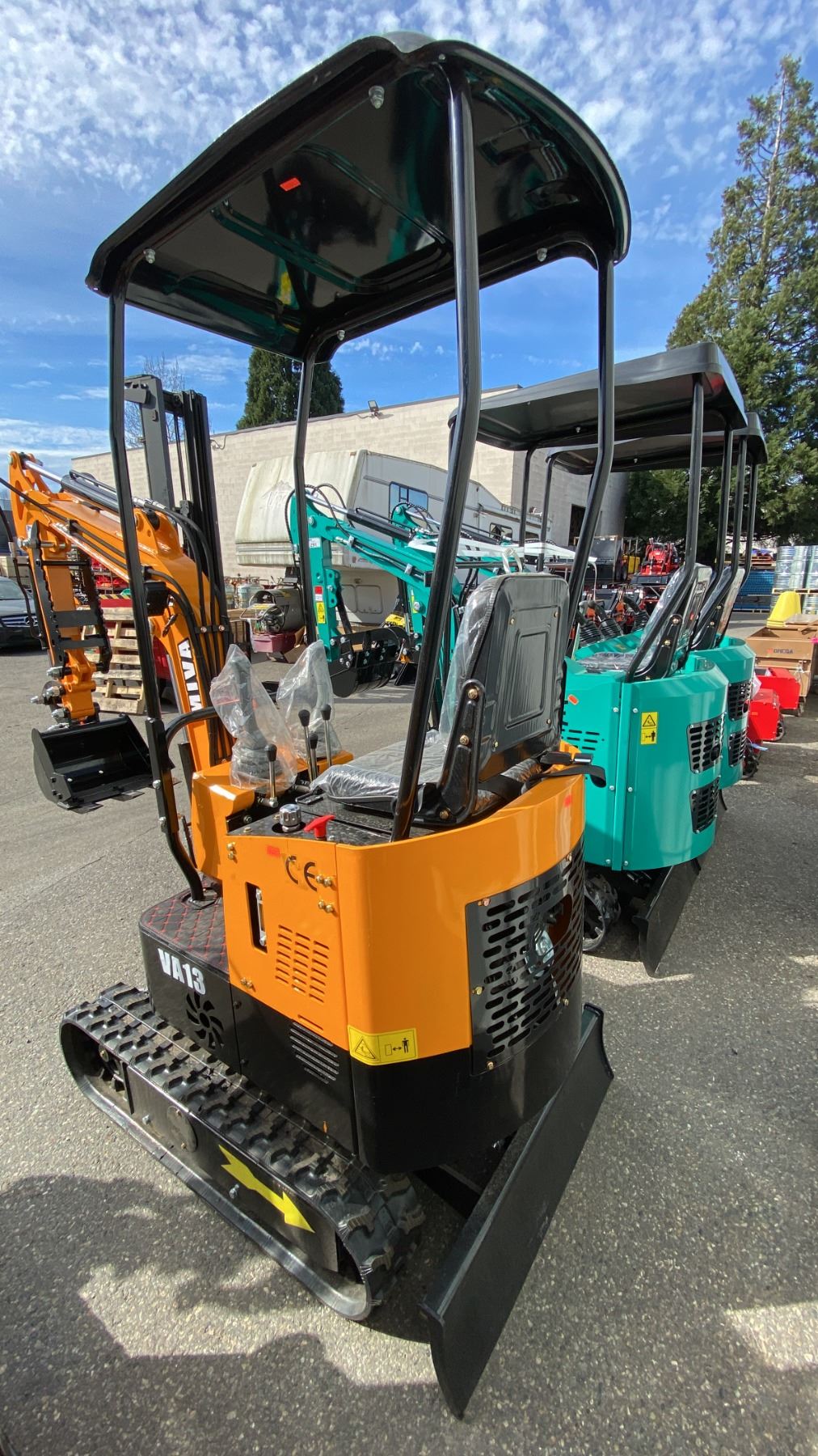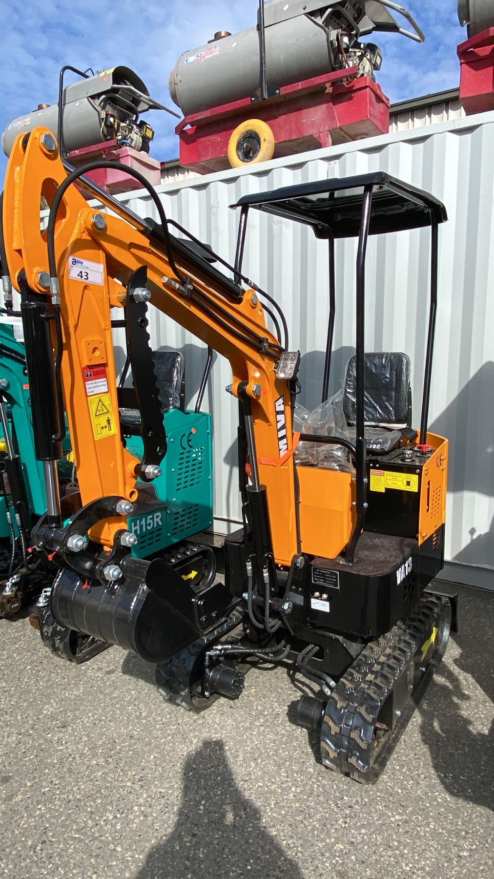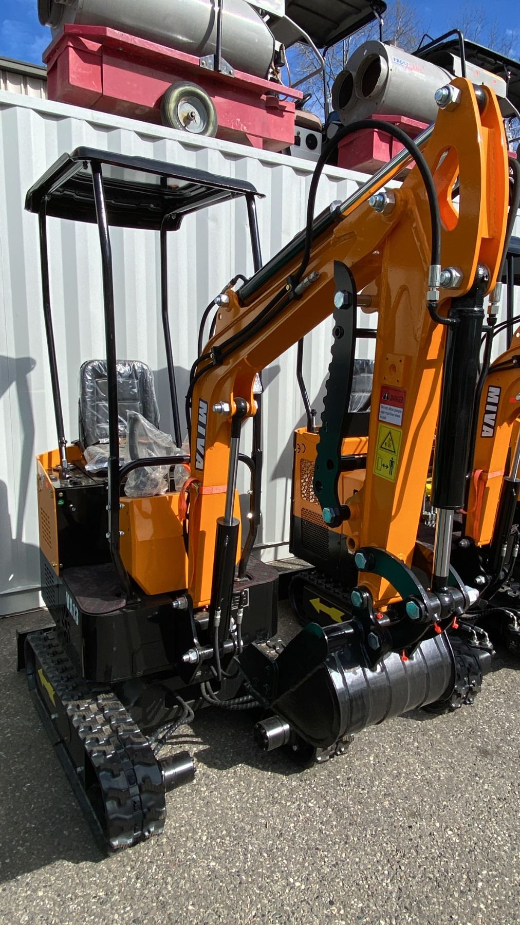 MIVA VA13 YELLOW 13.5 HP GAS POWERED RUBBER TRACK MINI EXCAVATOR WITH ATTACHED DIGGING BUCKET, GRADER BLADE, STATIONARY CLAW, MINI TOOL KIT & KEYS *MEETS CANADIAN EMISSIONS CONTROL REGULATIONS* *MUST HAVE PROPER EQUIPMENT TO TRANSPORT*