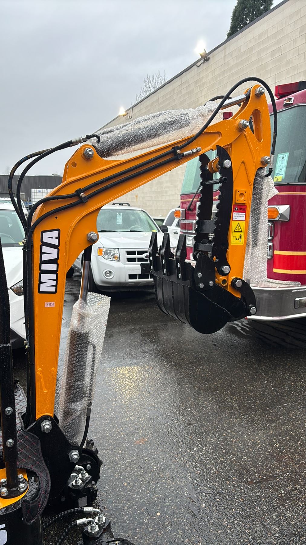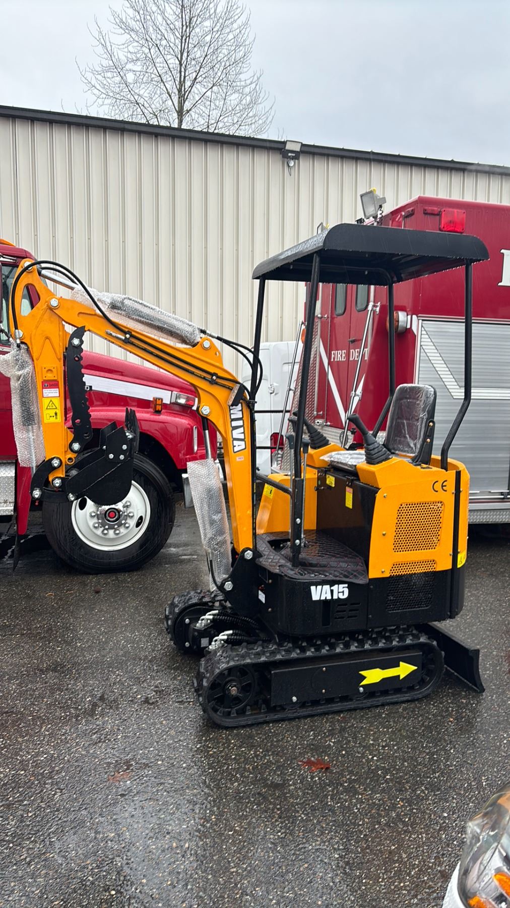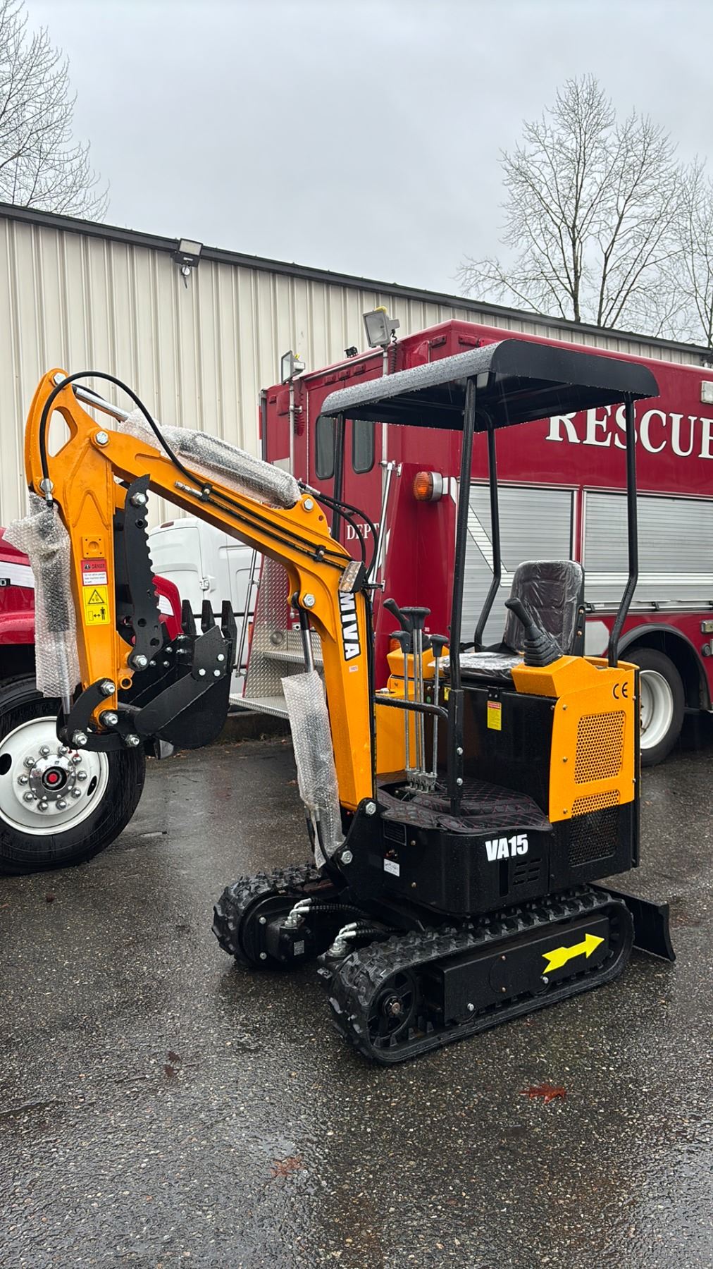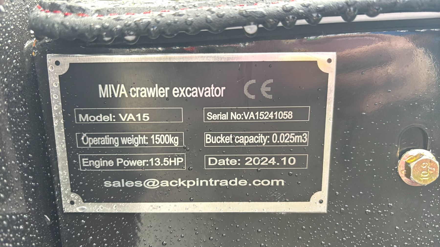 MIVA VA15 2024 YELLOW 13.5 HP GAS POWERED RUBBER TRACK MINI EXCAVATOR WITH ATTACHED 0.025M CUBED CAPACITY DIGGING BUCKET, GRADER BLADE, MINI TOOL KIT & KEYS *MEETS CANADIAN EMISSIONS CONTROL REGULATIONS*