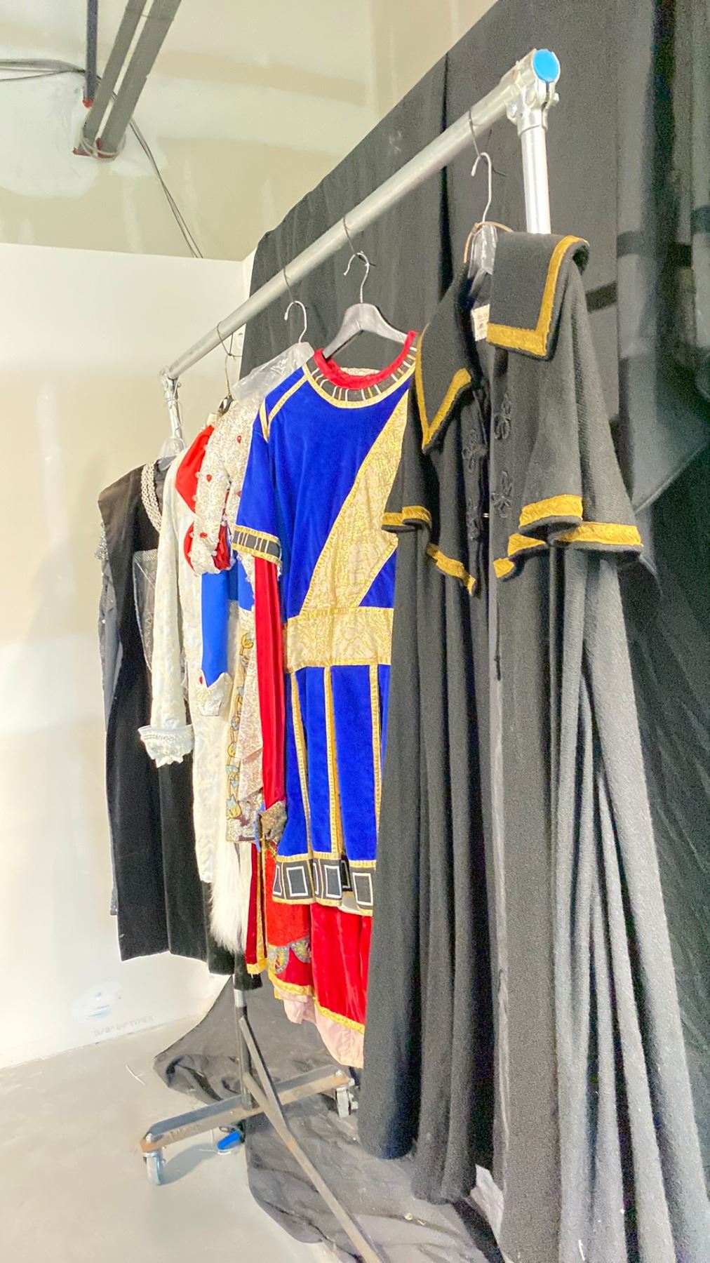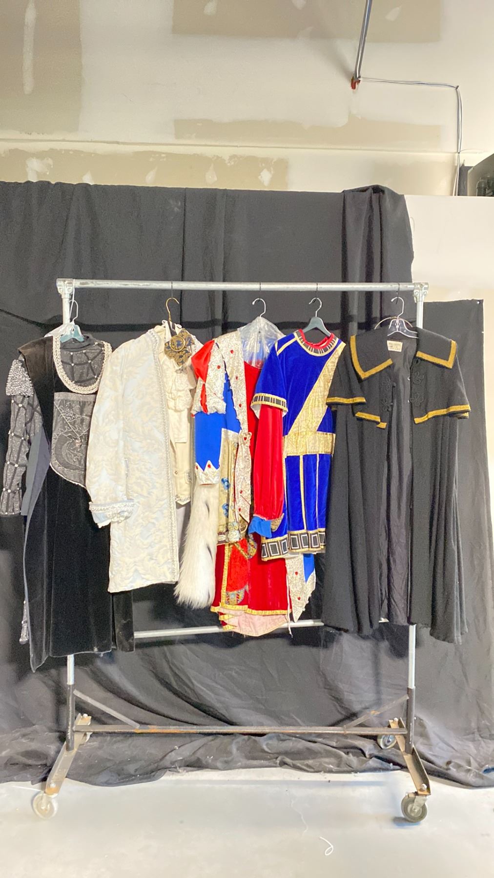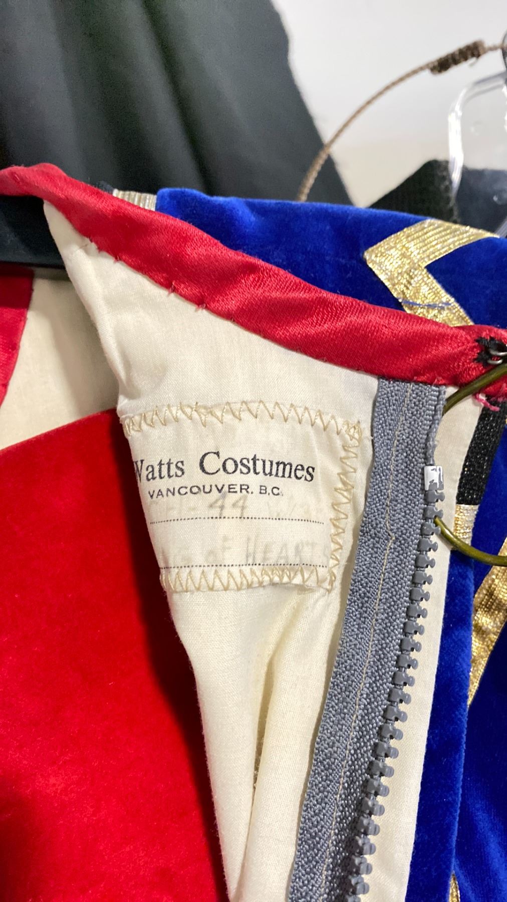 MIXED COSTUMES INCLUDING ALICE IN WONDERLAND KING & QUEEN OF HEARTS, 1750'S NOBLEMAN, 1300'S COSTUME WITH DRAGON APPLIQUE AND 1600S CLOAK