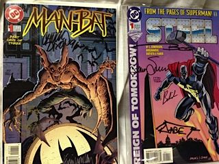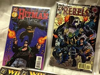 MIXED LOT OF SIGNED DC COMICS WITH C.O.A INC.: HITMAN NO. 1 -  REBELS '94 NO. 0 -  MAN-BAT NO. 1 -  STEEL NO. 1 -  KINGDOM COME NO. 1 -  PRIMAL FORCE NO. 0 AND 3 COPIES OF WONDER WOMAN NO. 100 ALL SIGNED WITH C.O.A.
