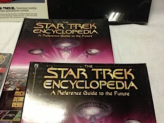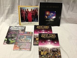 MIXED LOT OF STAR TREK COLLECTABLES INC.: 2 COPIES STAR TREK ENCYCLOPEDIA (1 HC, 1SC), 3D STAR TREK ALBUM WITH SLIP CASE FACTORY SEALED, STAR TREK 3 PROMO ART AND STAR TREK MAGAZINES