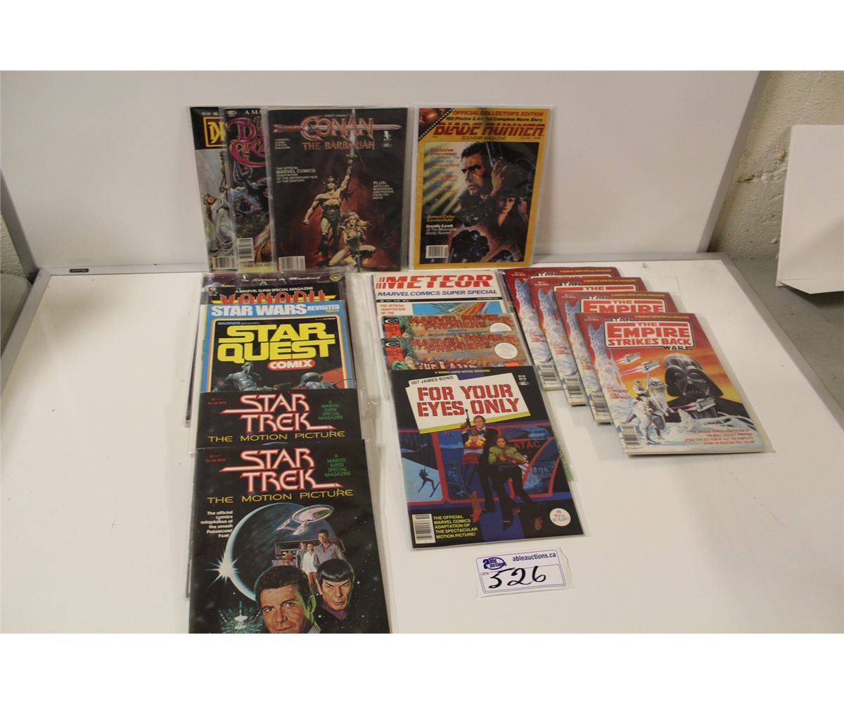 MIXED MARVEL MAGAZINES INCLUDING: STAR WARS, STAR TREK, JAMES BOND CONAN AND MORE.