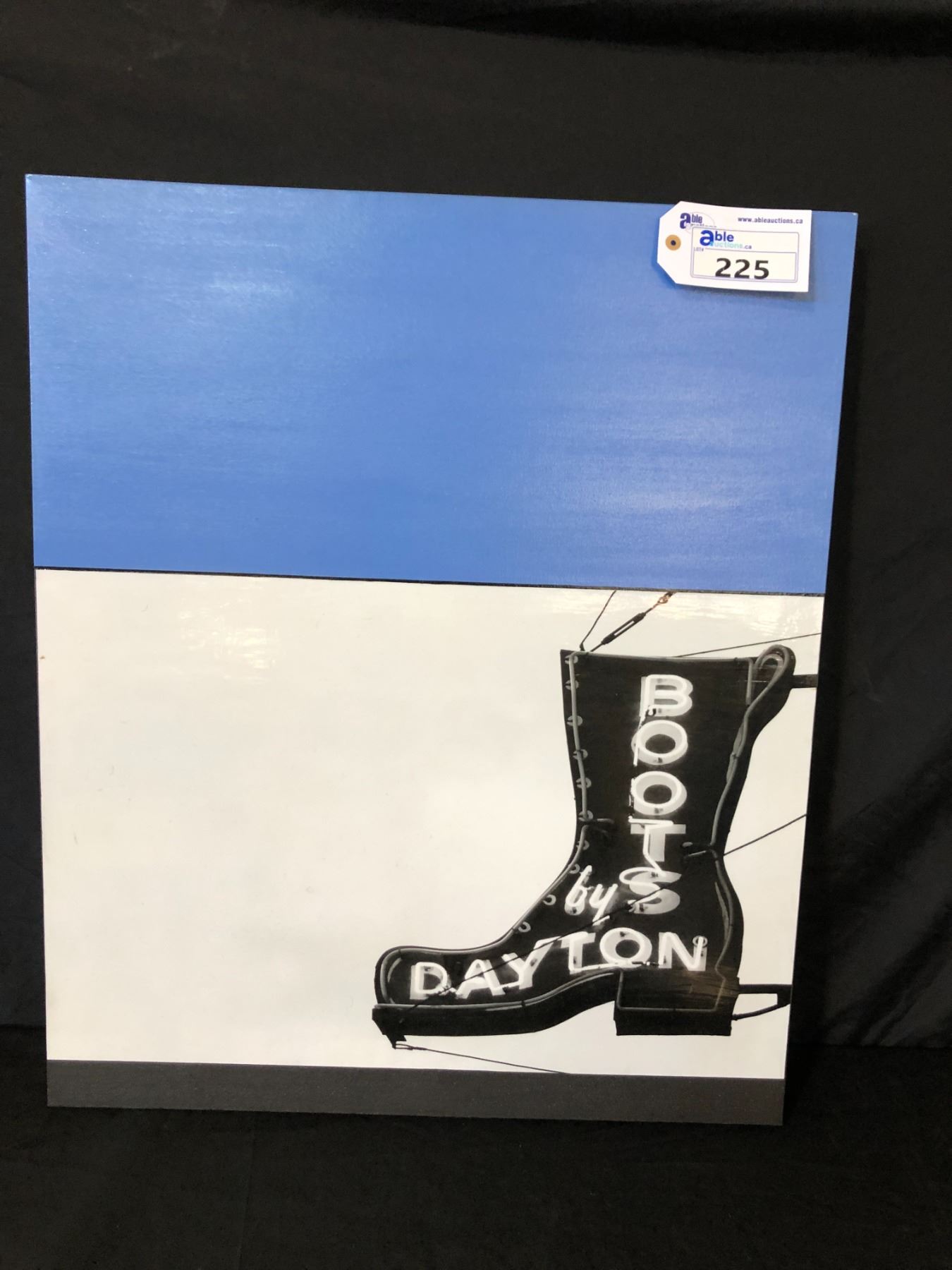 MIXED MEDIA ON CANVAS "DAYTON BOOTS" BY JOCELYN FISK SCHIEGER 36" X 30"