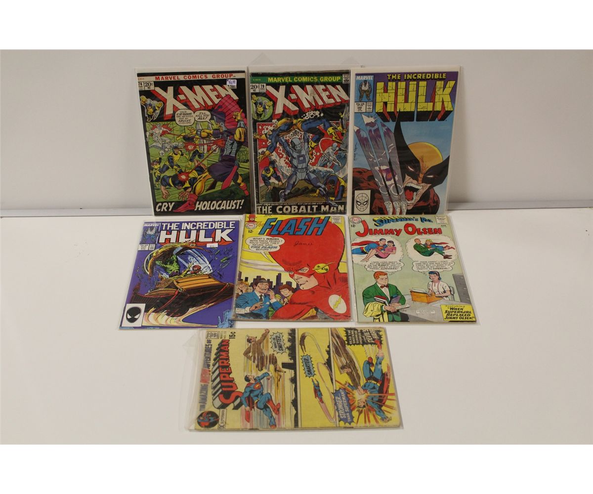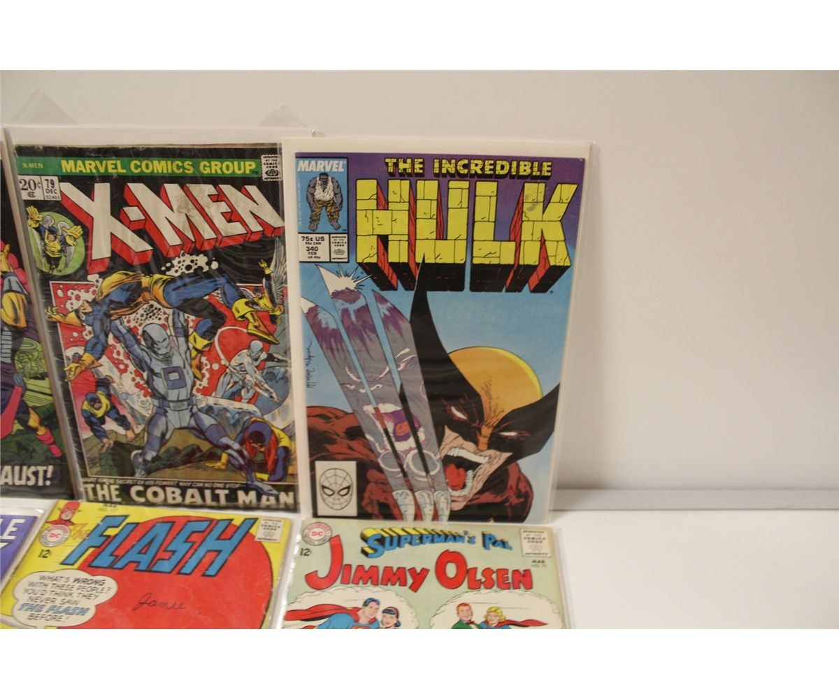MIXED SILVER AND BRONZE LOT KEY ISSUES AND NICE BOOKS. MIXED GRADES X-MEN # 74 IN HIGH MID, HULK #340 JIMMY OLSON, FLASH AND MORE!