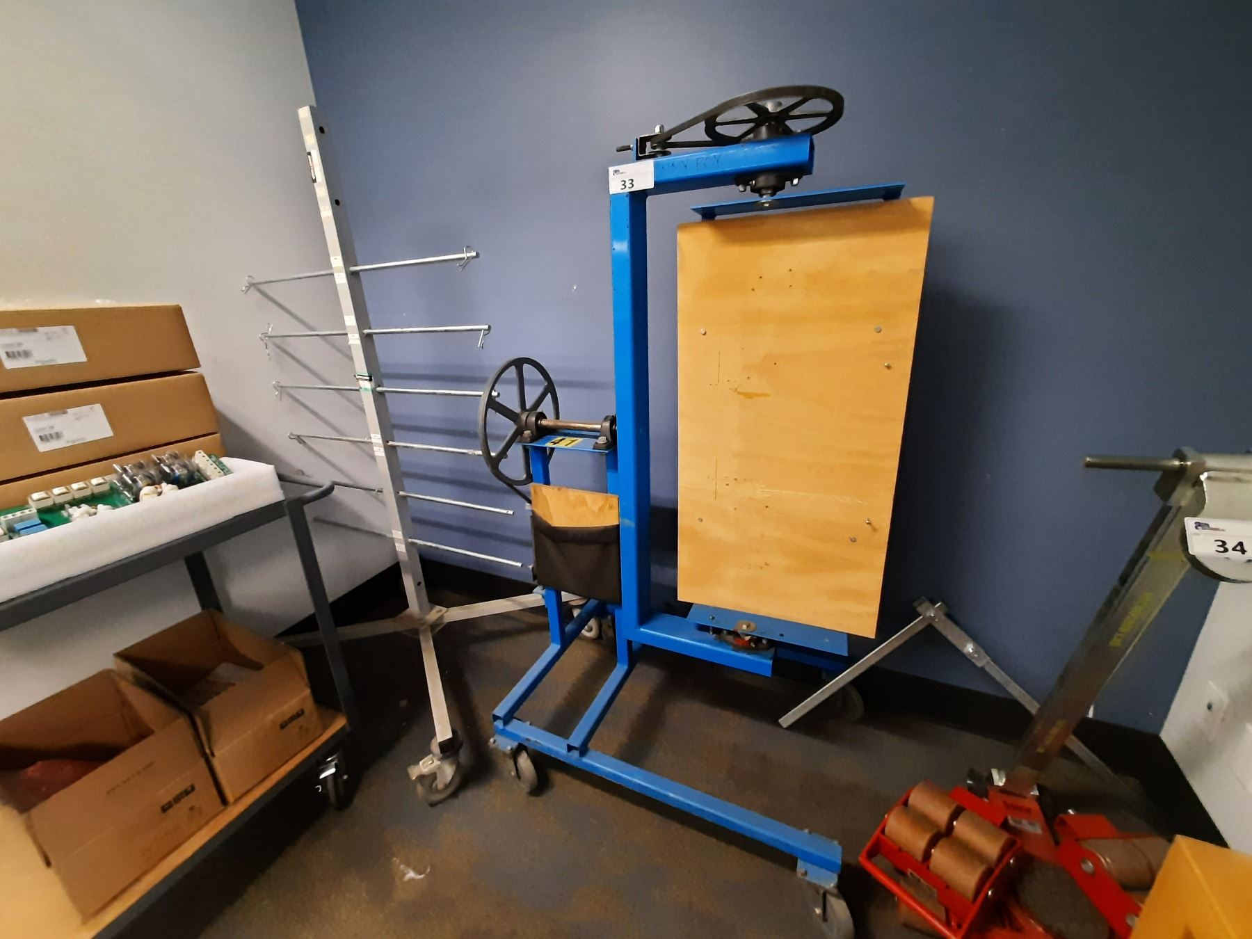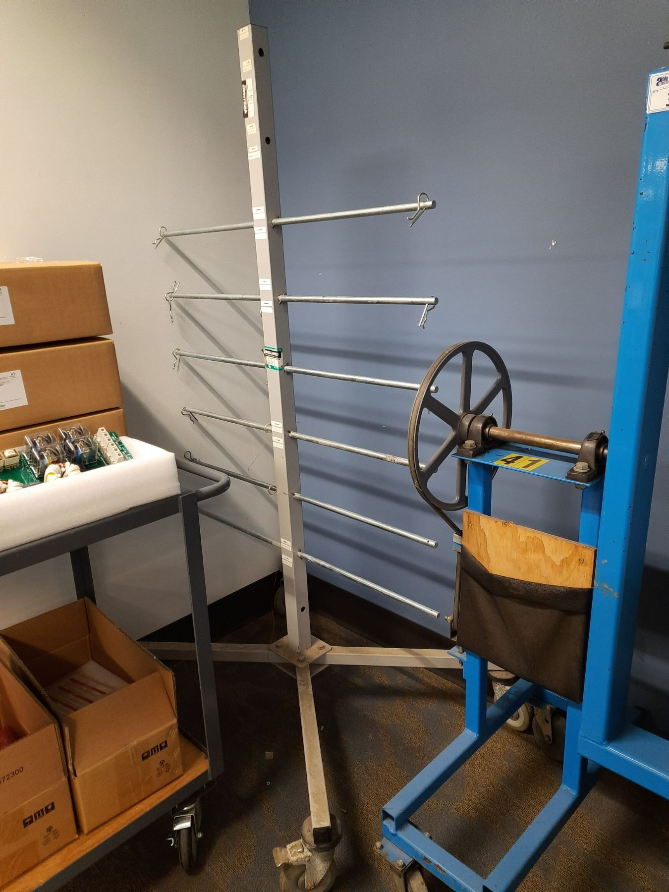 MOBILE 12 ROD COIL RACK AND MOBILE ADJUSTABLE ROTATING WORK STATION