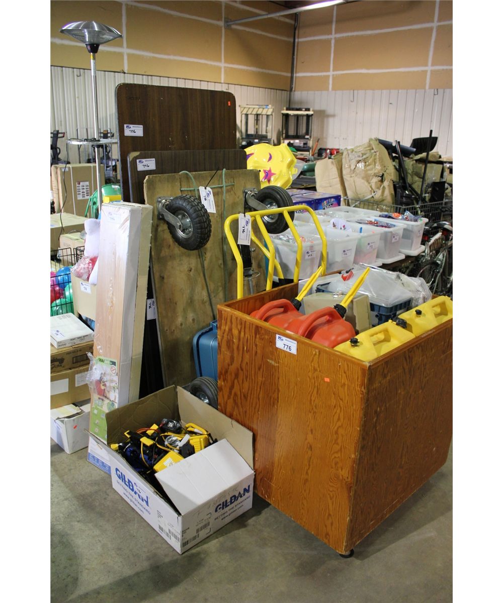 MOBILE BIN OF CONTAINERS AND BINS, FOLDING TABLES, OFFICE SUPPLIES