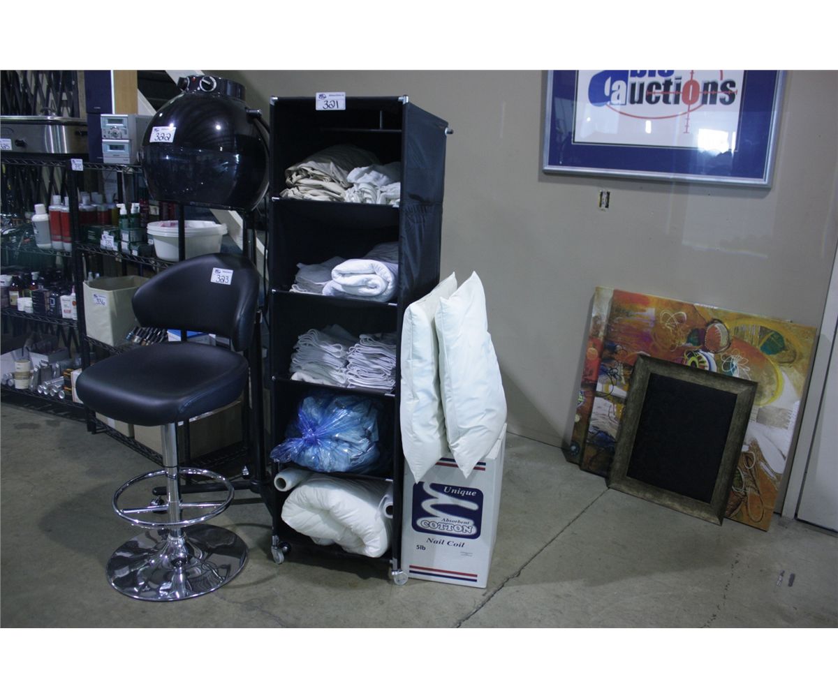 MOBILE BLACK FABRIC CART WITH SALON LINENS