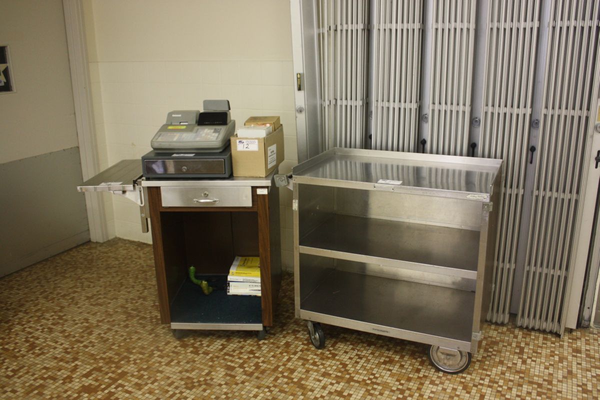MOBILE CAFETERIA PAYMENT STATION INCLUDING UNIWELL CASH REGISTER AND 2 CARTS
