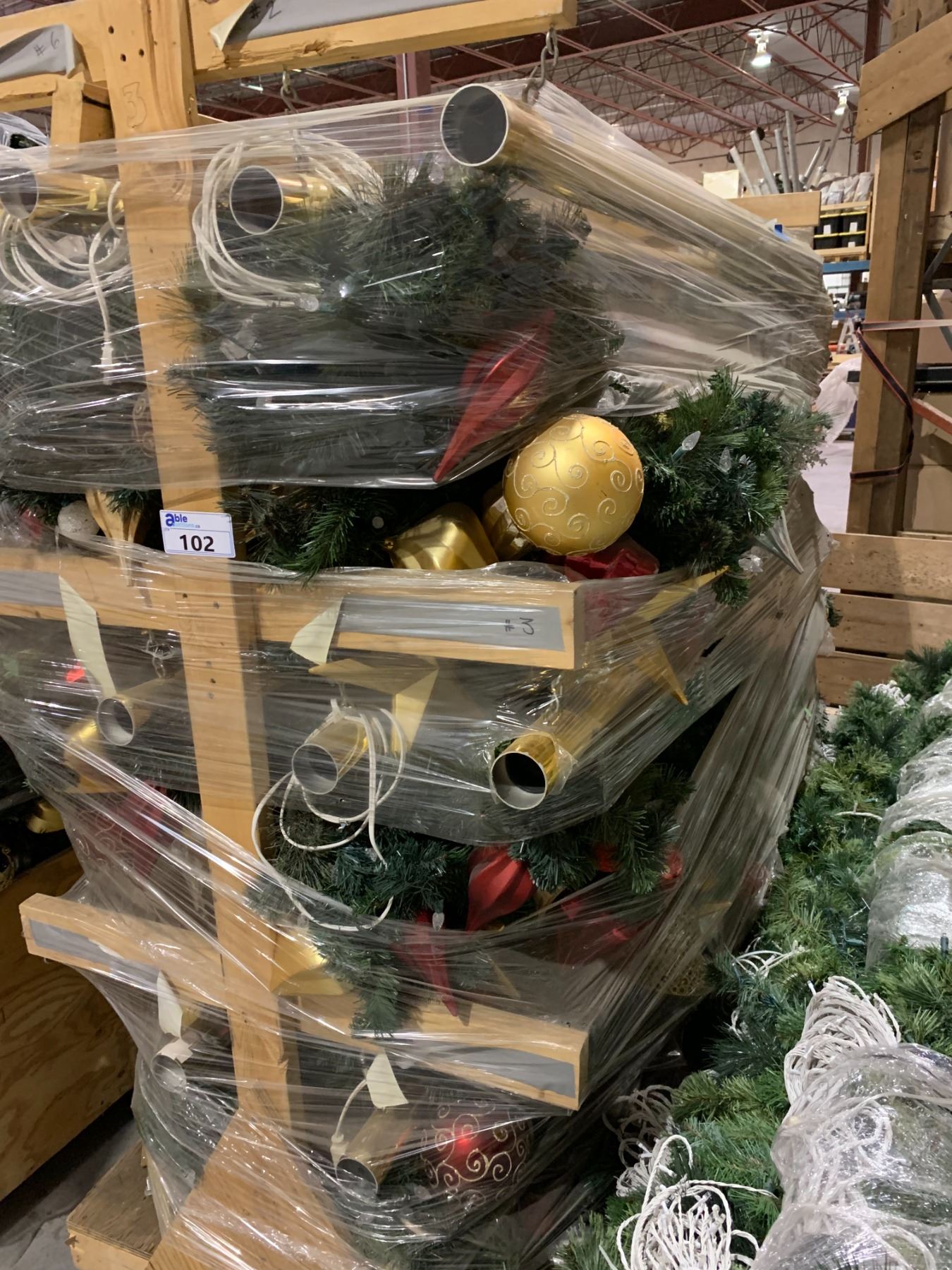 MOBILE CART OF 10' GOLD POLE ILLUMINATED CHRISTMAS SWAG GARLAND DISPLAYS *MOBILE CART INCLUDED*