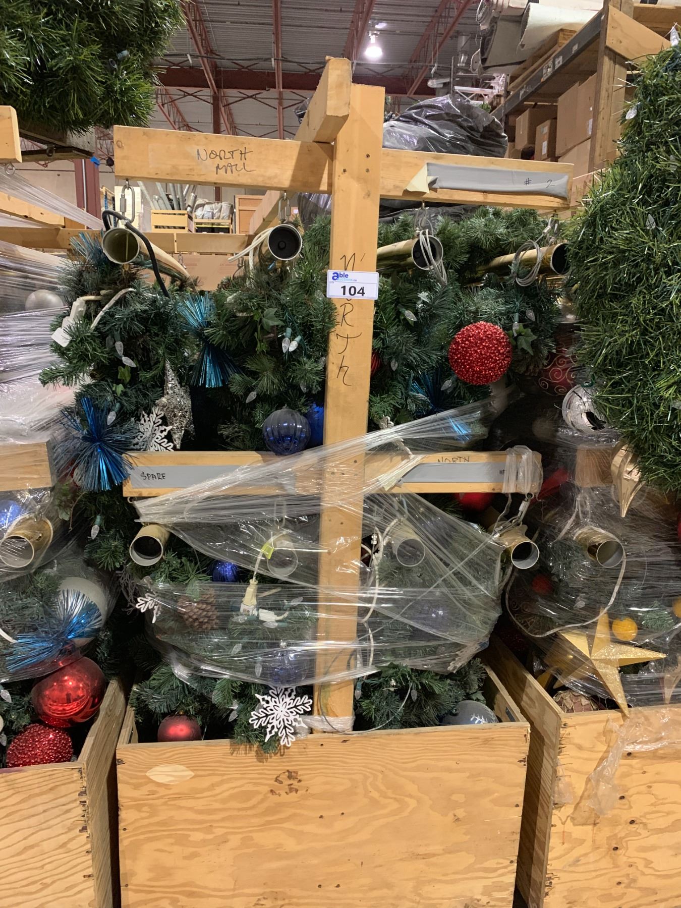 MOBILE CART OF 10' GOLD POLE ILLUMINATED CHRISTMAS SWAG GARLAND DISPLAYS *MOBILE CART INCLUDED*