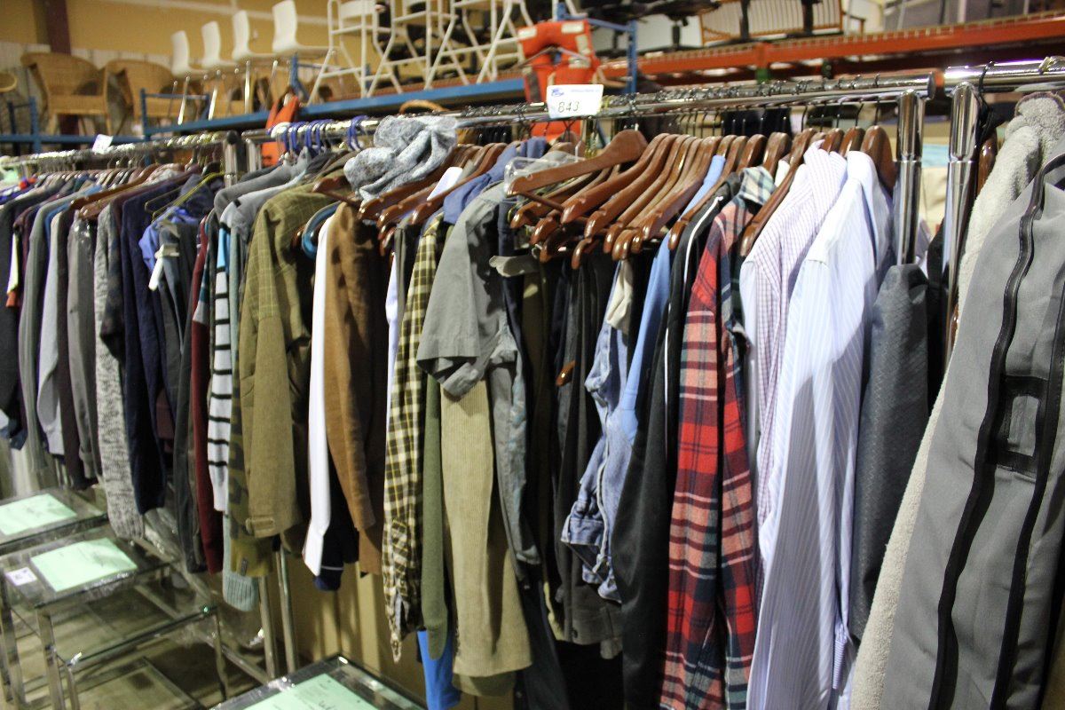 MOBILE CLOTHING RACK WITH ASSORTED CLOTHING