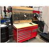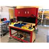 MOBILE INDUSTRIAL RED METAL 2 DRAWER, 3 DOOR WORK STATION WITH LIGHT/MAGNIFYING GLASS AND CAT40 ARBOR VICE 5' X 30" X 36" WORK HEIGHT 75" OVERALL HEIGHT
