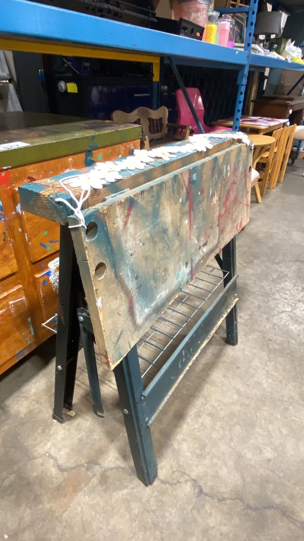 MOBILE METAL TOP WORK TABLE WITH FOLDING WORK BENCH