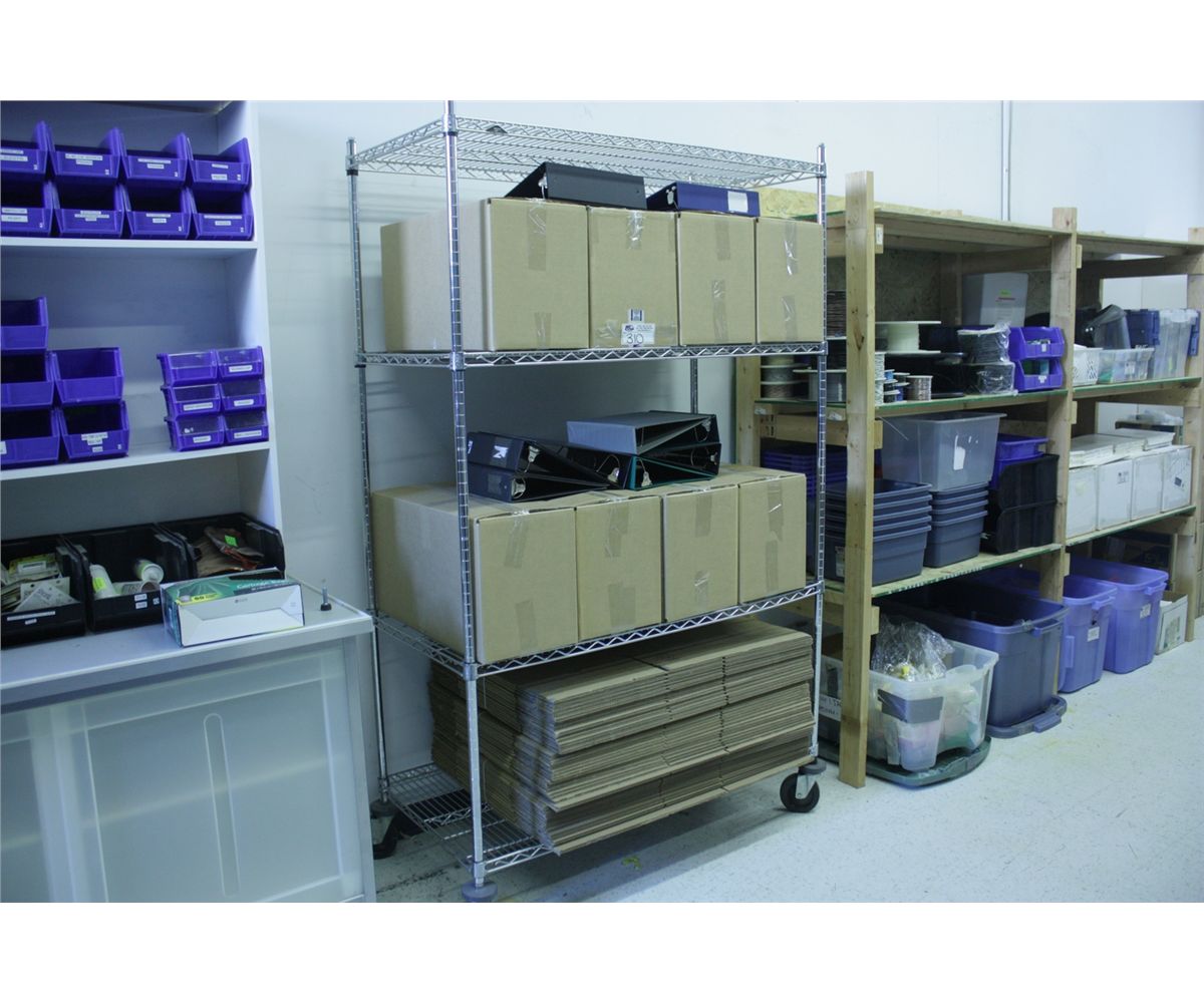 MOBILE METRO RACK OF BINDERS AND BOXES