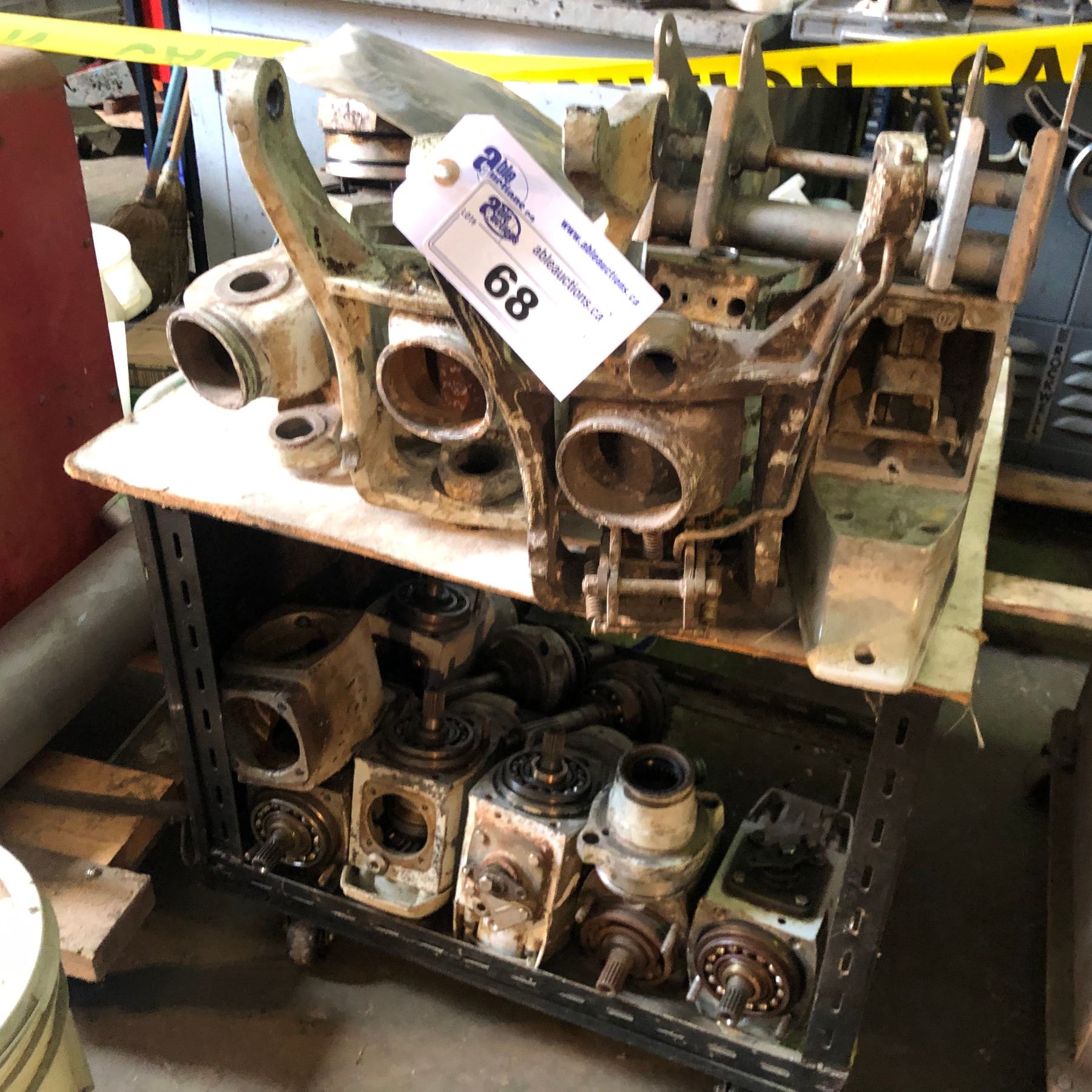 MOBILE SHOP CART WITH ASSORTED ENGINE PARTS
