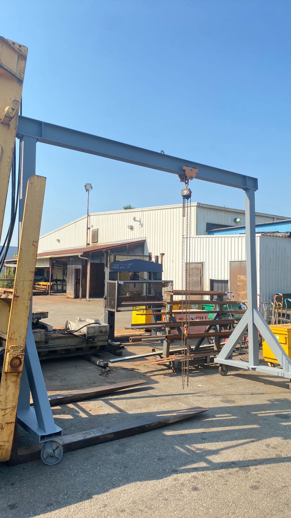 MOBILE SHOP CRANE WITH POWERFIST 2 TON TROLLEY & A 3 TON CHAIN HOIST - APPROX. 14'W X 5.5'D X 12'H