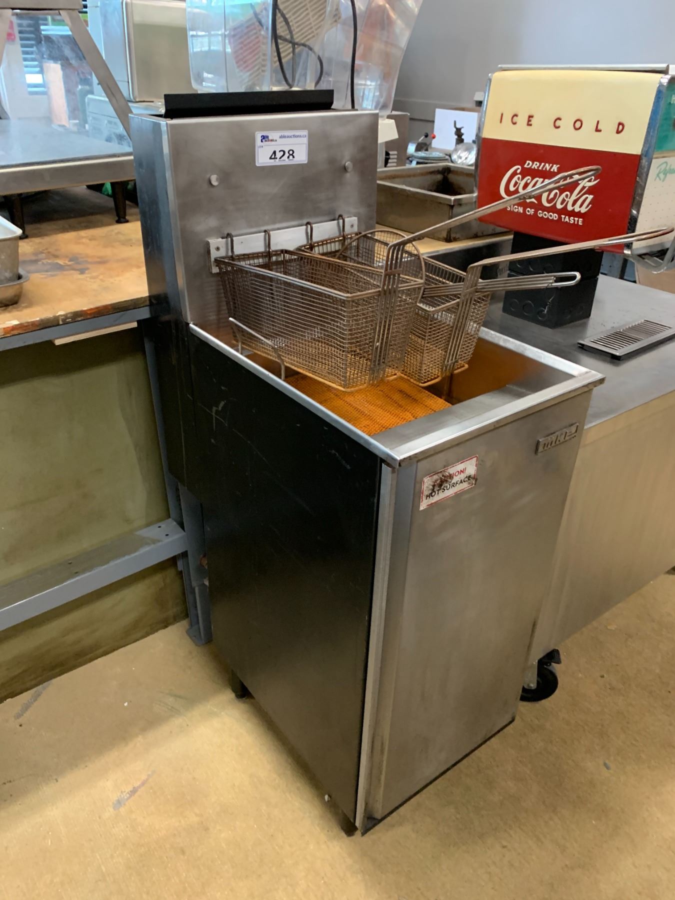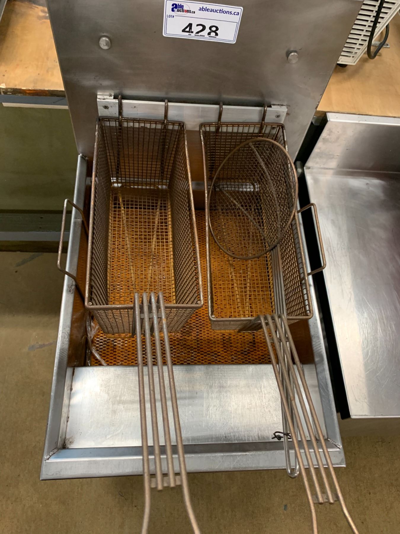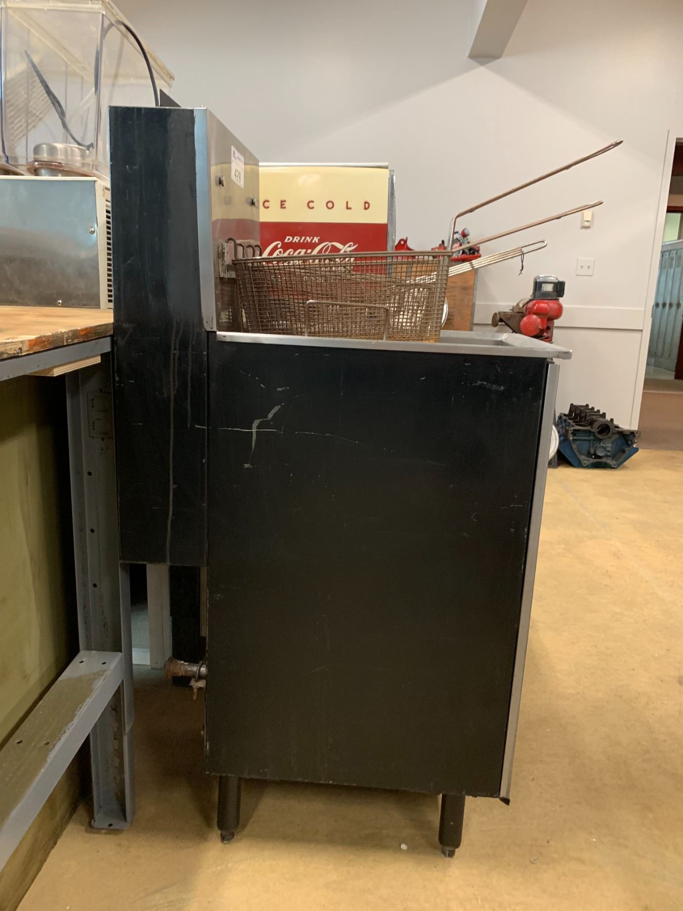 MOBILE STAINLESS STEEL MK2 DUAL BASKET DEEP FRYER (RUSTED BASKETS & MORE) APPROX 49"X16"X27"