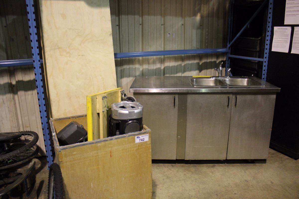 MOBILE STAINLESS STEEL SINK WITH DIVIDER WALLS, SPEAKERS & BIN