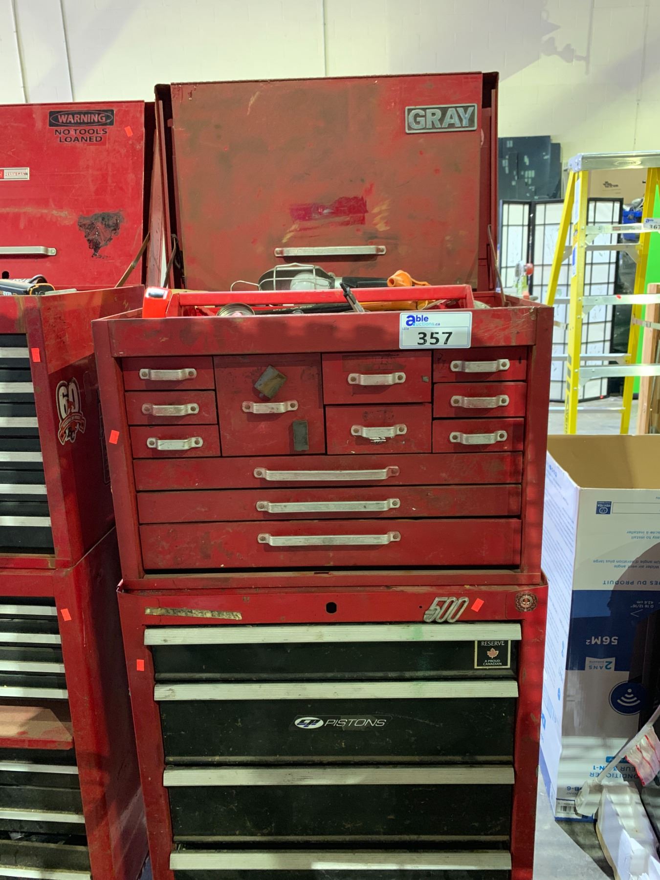 MOBILE TOOLBOX WITH ASSORTED CONTENTS INCLUDING; ROTARY TOOL, 7" SANDER, WRENCHES & MORE