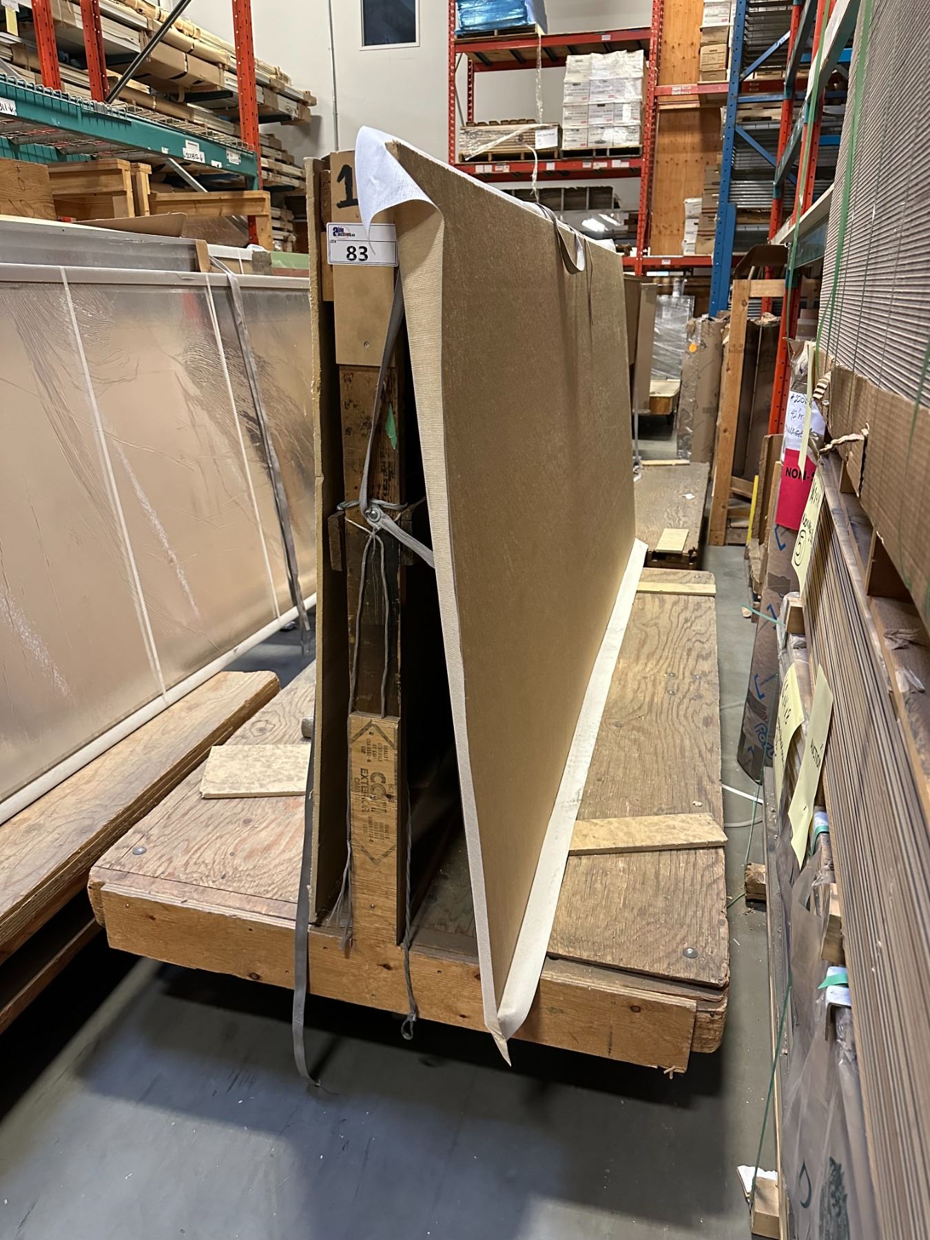 MOBILE WOOD A-FRAME PRODUCT STORAGE CART AND REMAINING CONTENTS