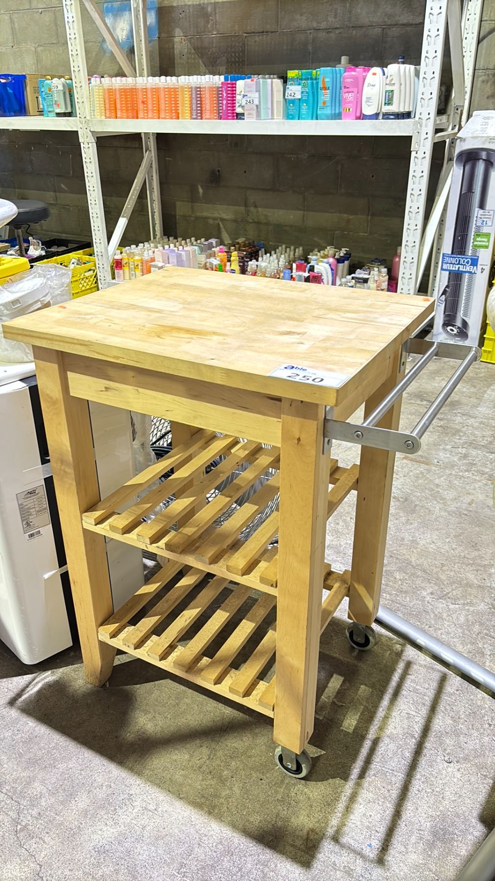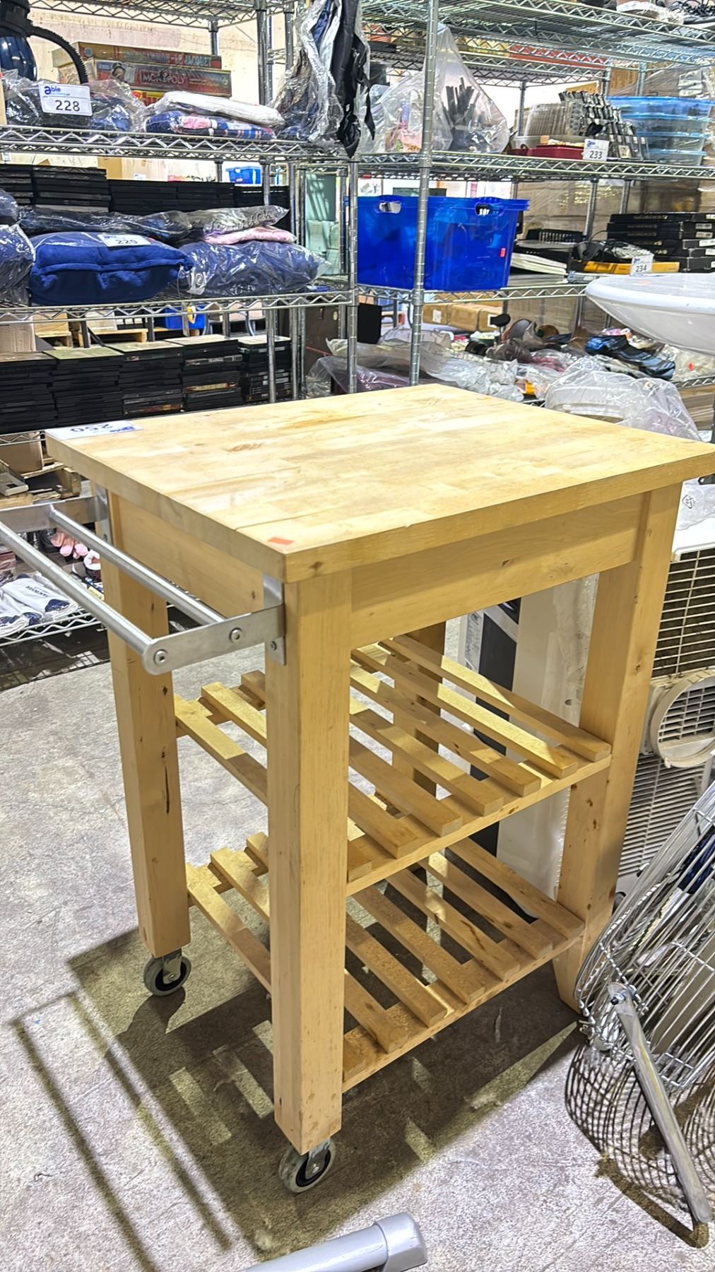 MOBILE WOOD KITCHEN ISLAND CART WITH 2 SHELVES