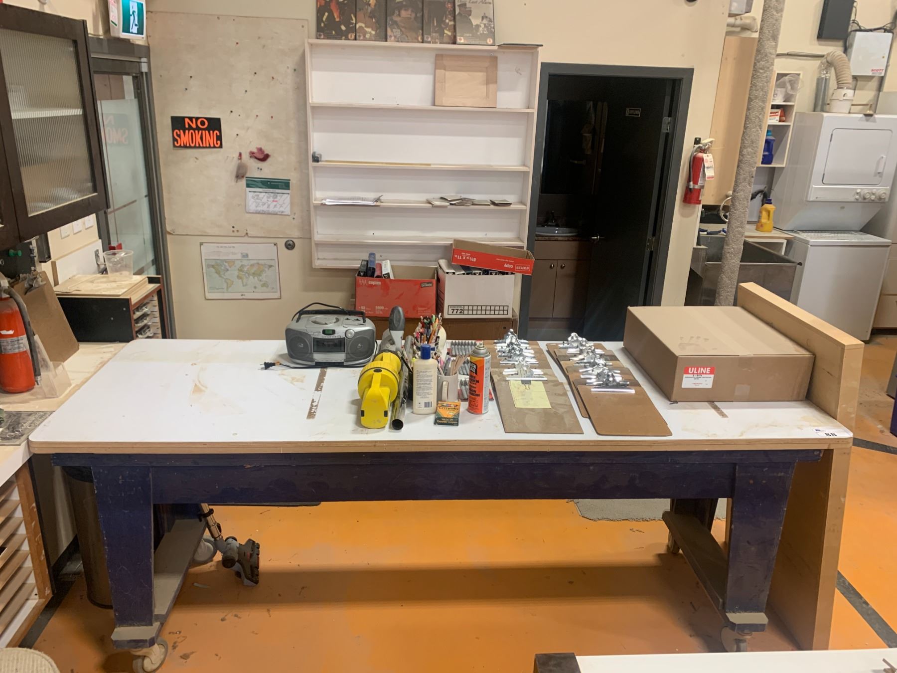MOBILE WOOD WORK STATION 96"W X 33"D X 38"H WITH CONTENTS