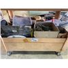 MOBILE WOODEN WORK BENCH (4' W) FILLED WITH NAILS, SCREWS & DOWELS