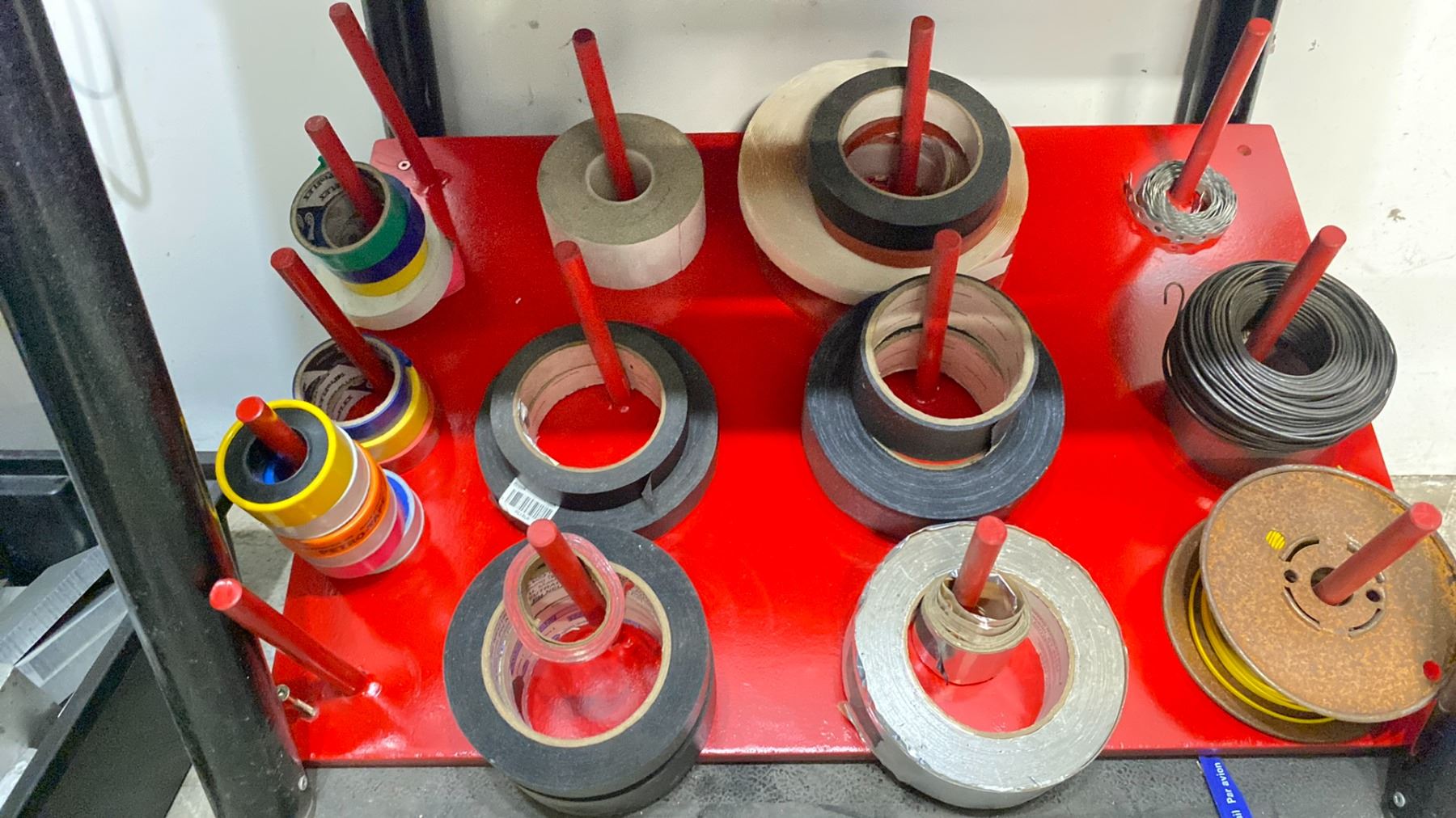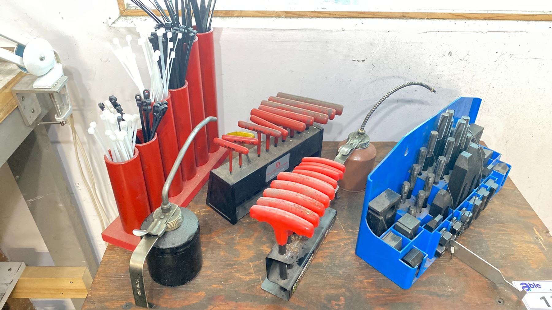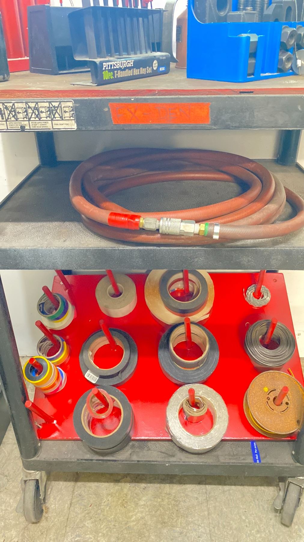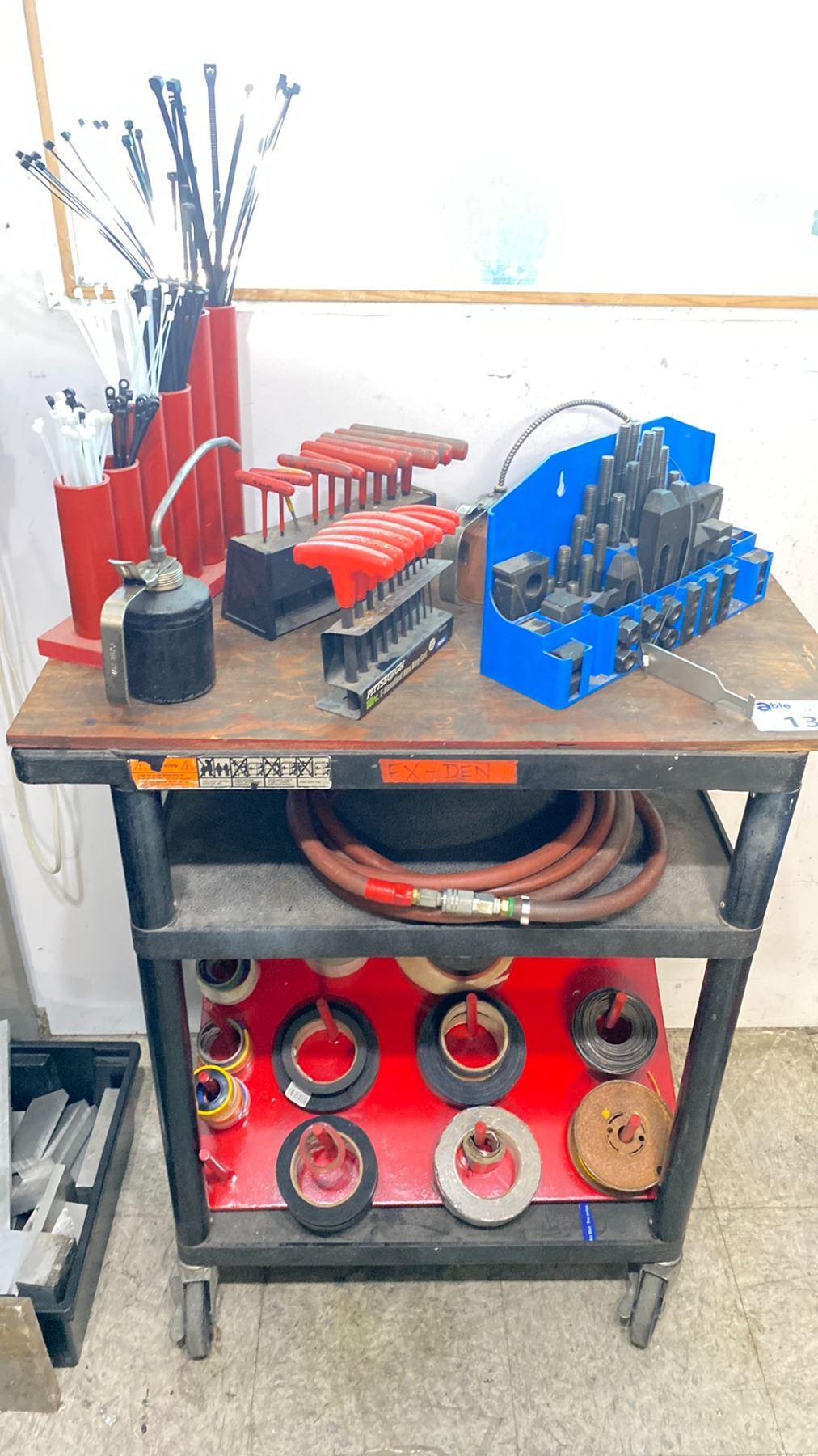 MOBILE WORK CART WITH MACHINIST TOOLING - CLAMP SET, HEX KEY SETS, ZAP STRAPS, ASSORTED TAPE & 2