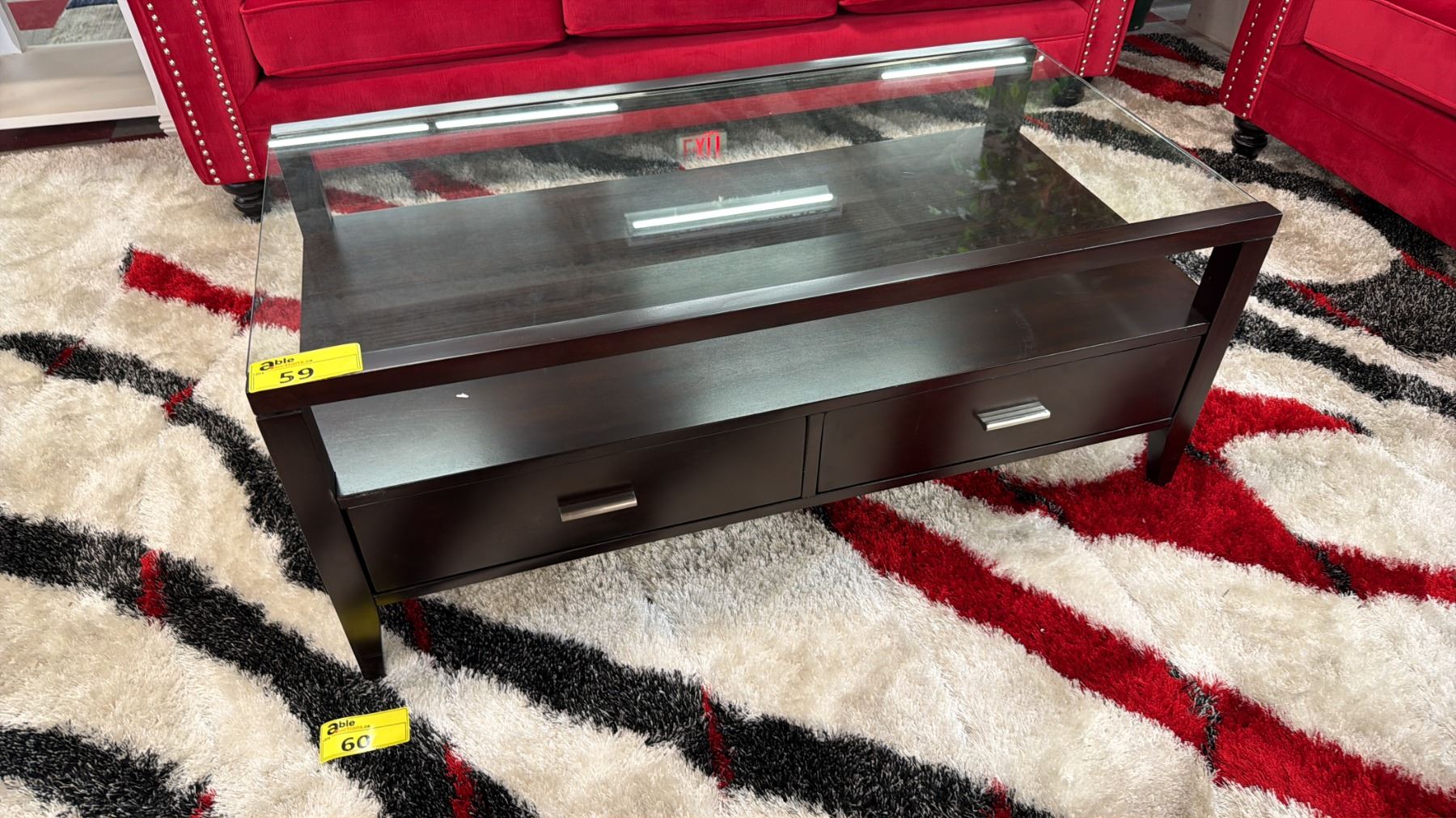MODERN 2-DRAWER WOOD & GLASS COFFEE TABLE