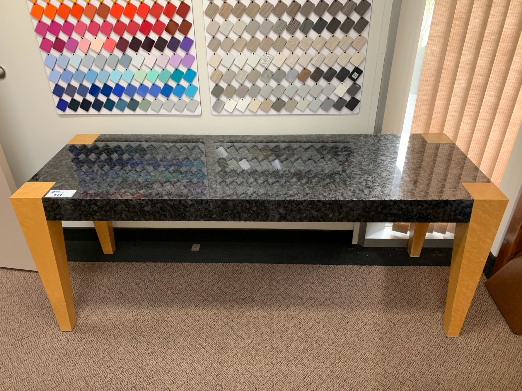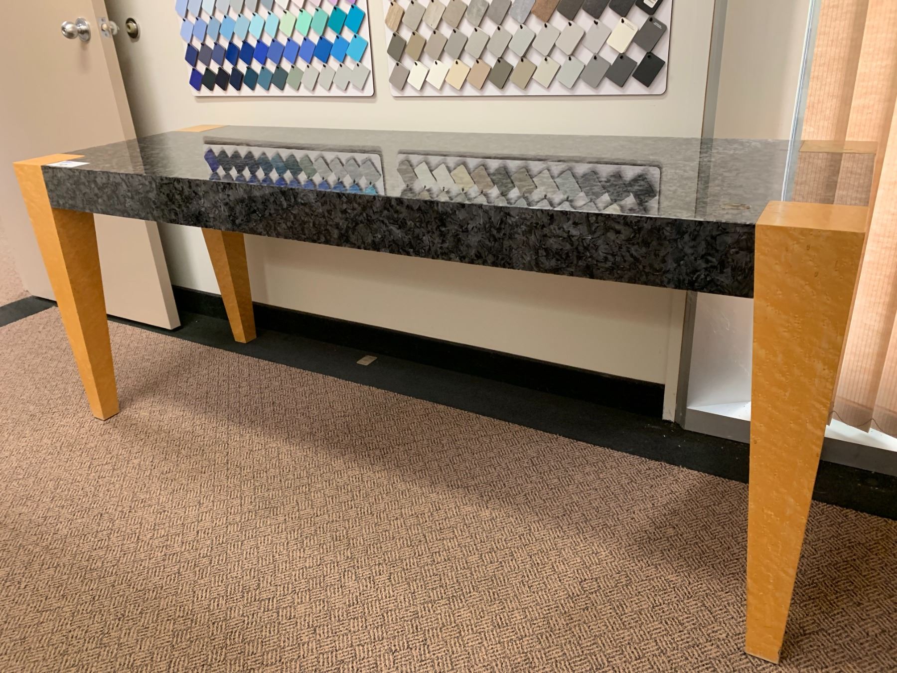 MODERN BIRDSEYE MAPLE & BLACK FINISH CONSOLE TABLE - APPROX. 8FT X 2FT X 2 1/2FT