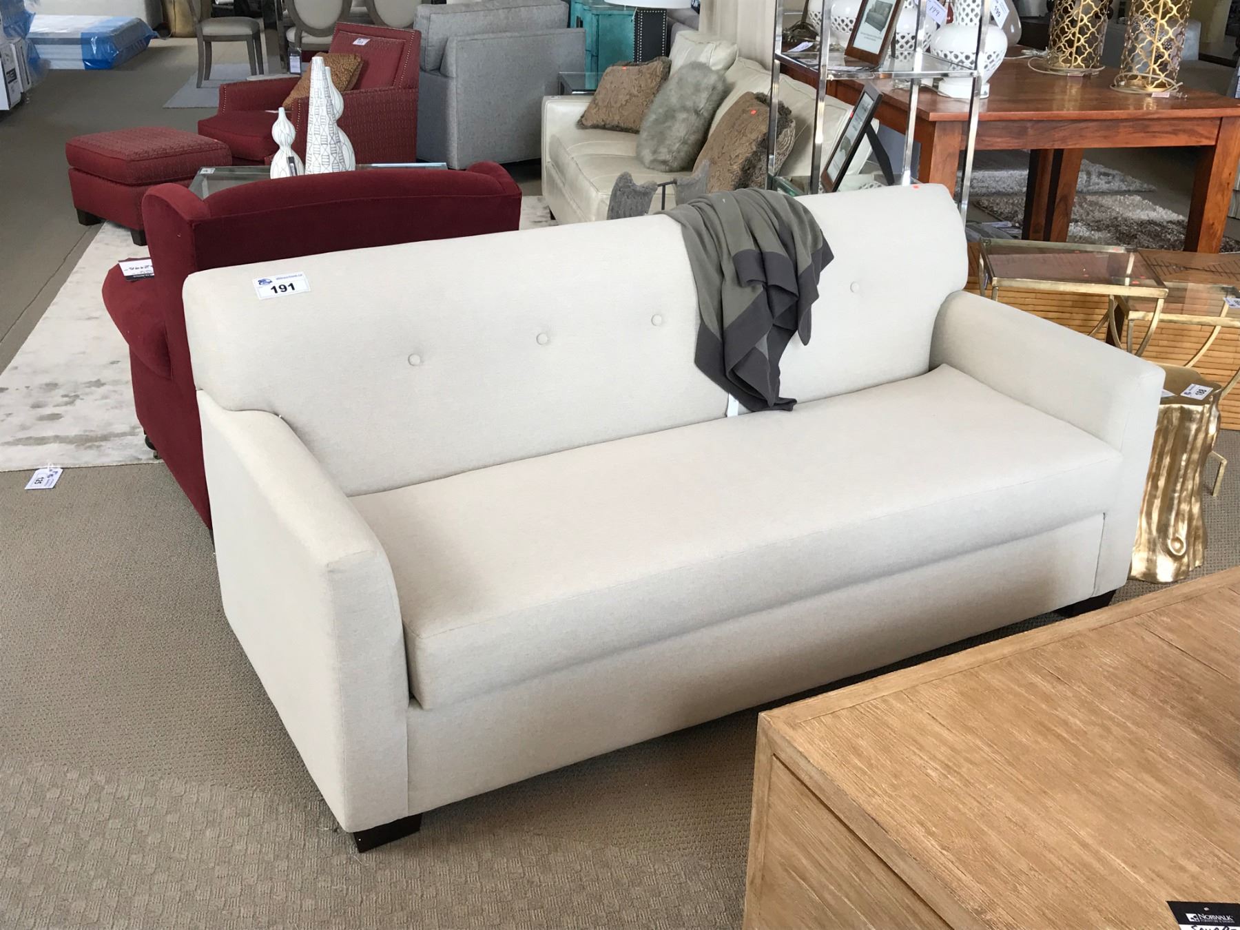 MODERN CREAM FABRIC 3 SEAT SOFA ( BUTTON MISSING )