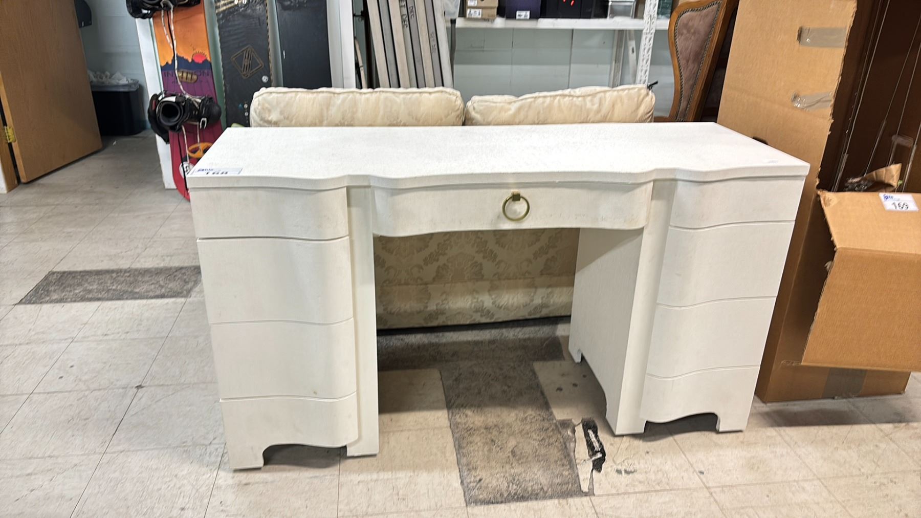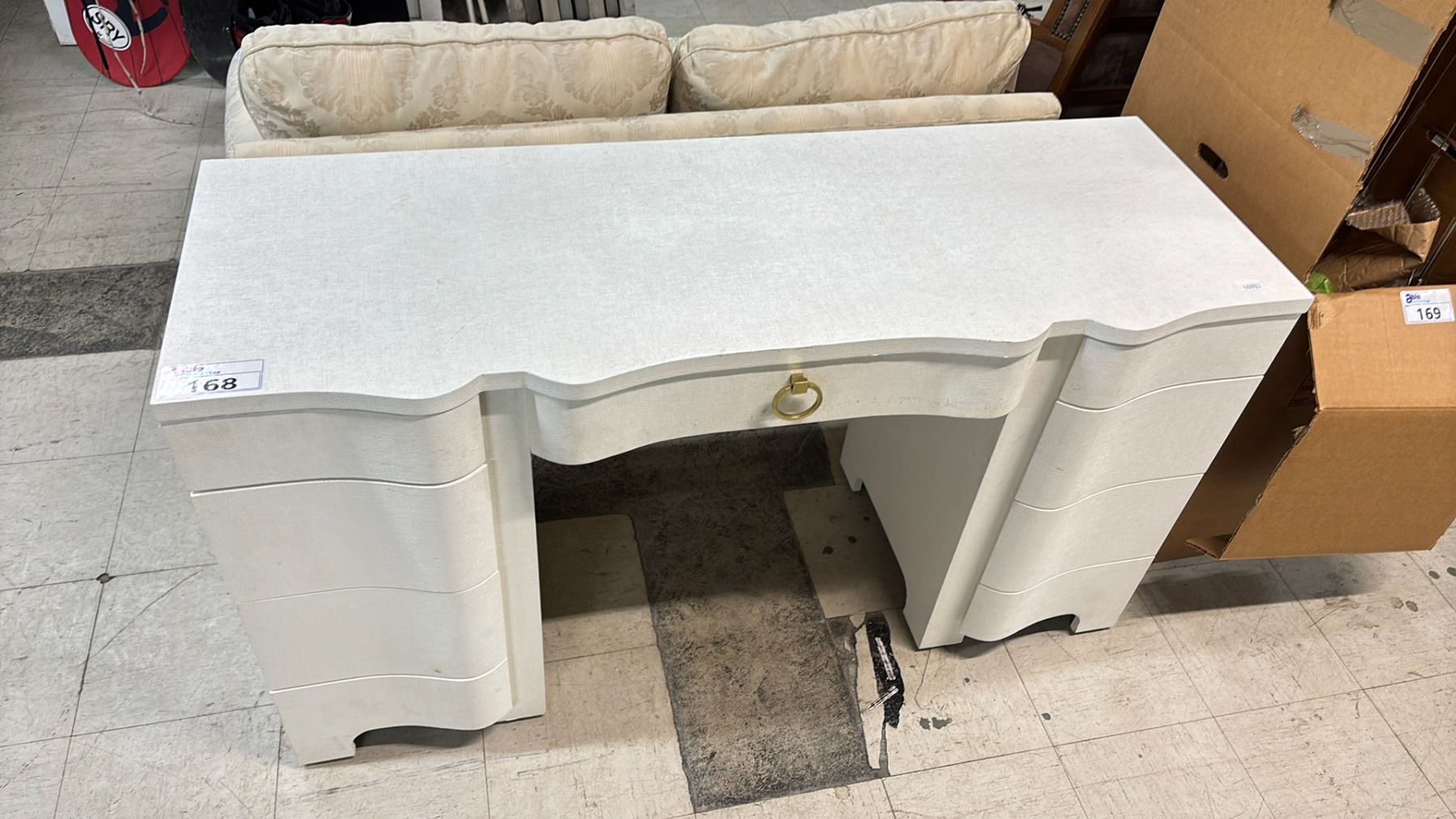 MODERN FRENCH PROVINCIAL STYLE DOUBLE PEDESTAL 7 DRAWER DESK