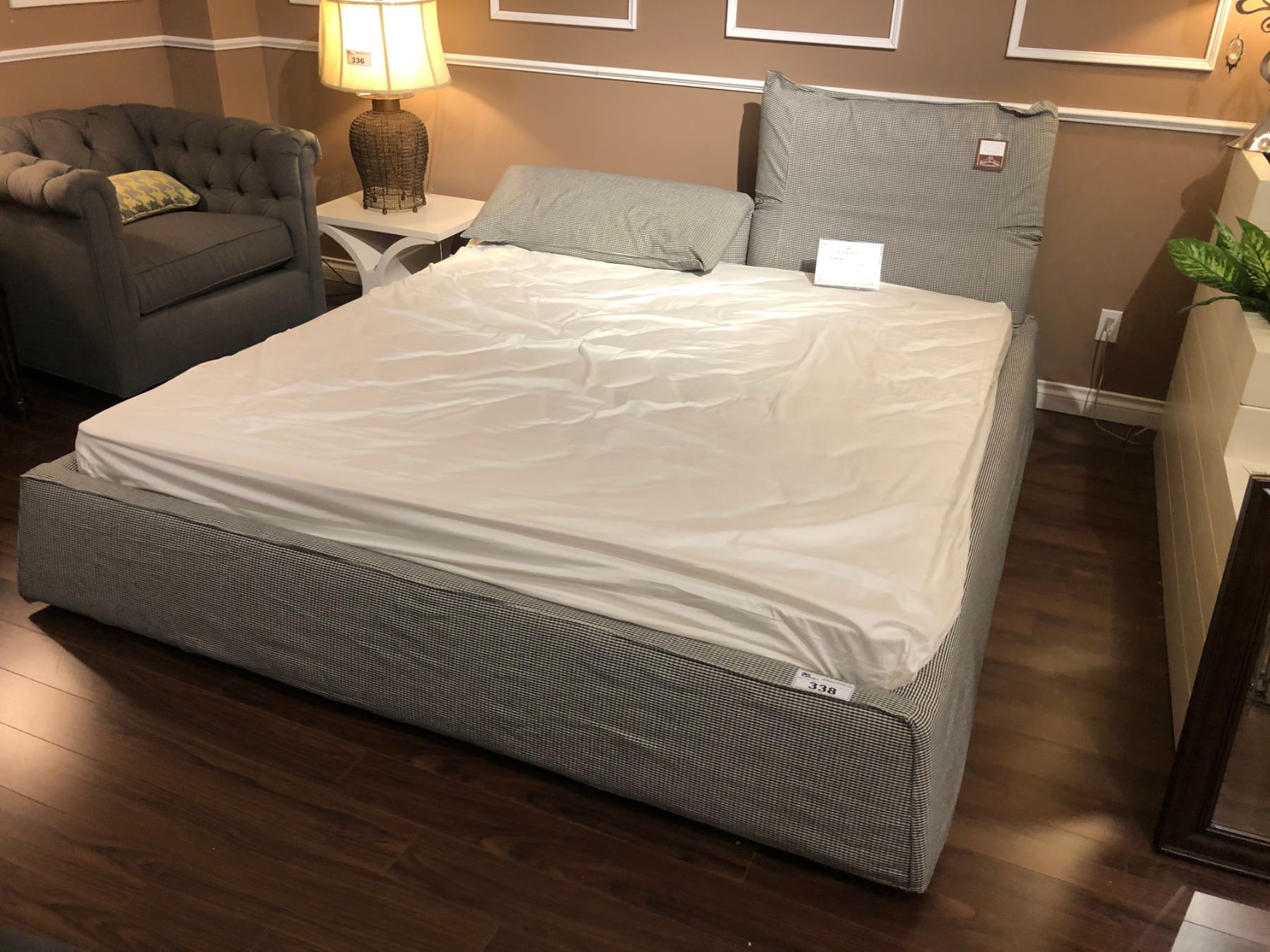 MODERN LOOK CHECKERED KING SIZE BED WITH ADJUSTABLE HEAD BOARD. RETAIL $3,080.00 MATTRESS NOT INCLUDED.