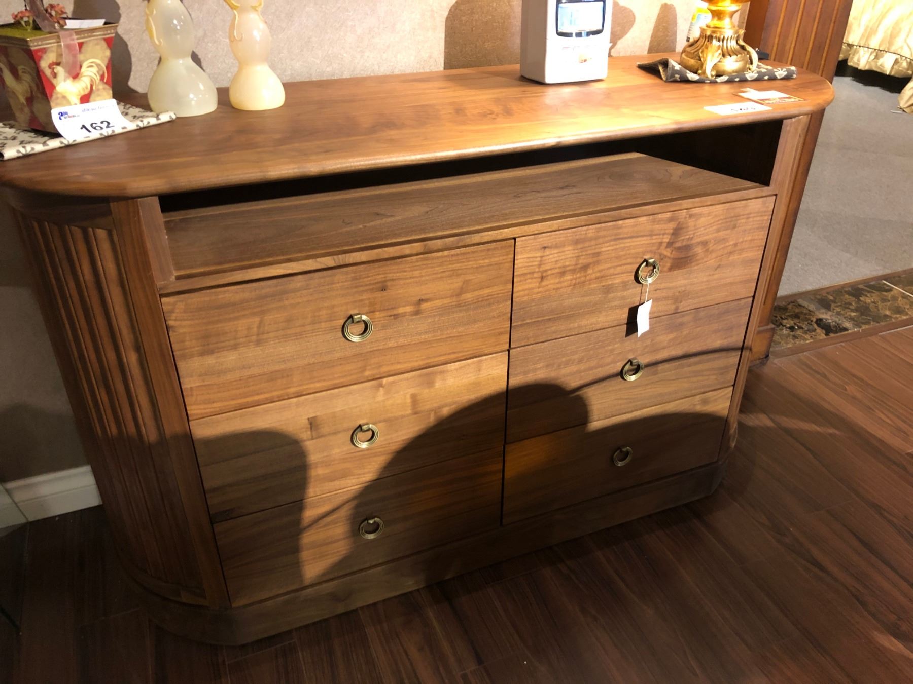 MODERN LOOK DARK WOOD SIDE CABINET. RETAIL $2,750.00