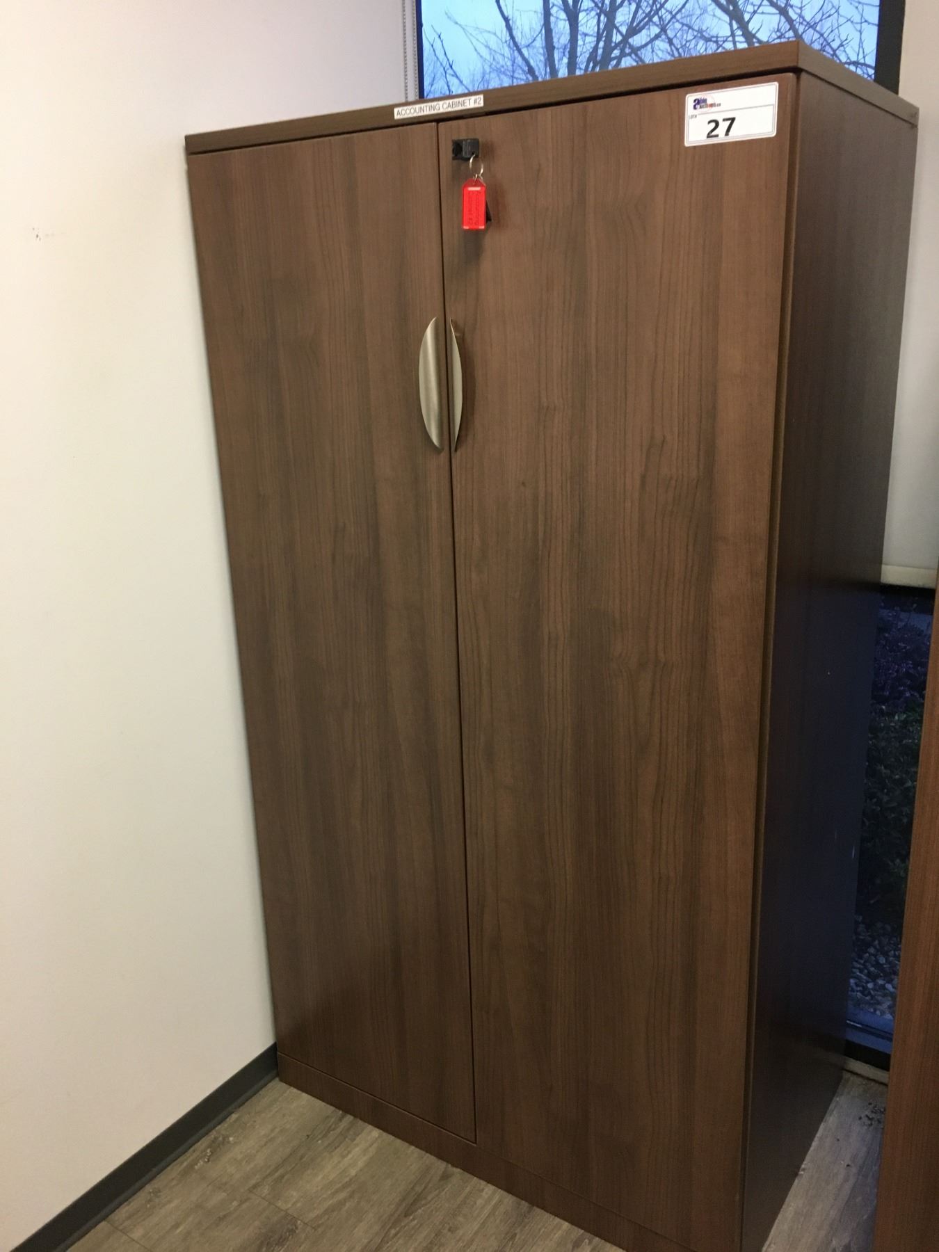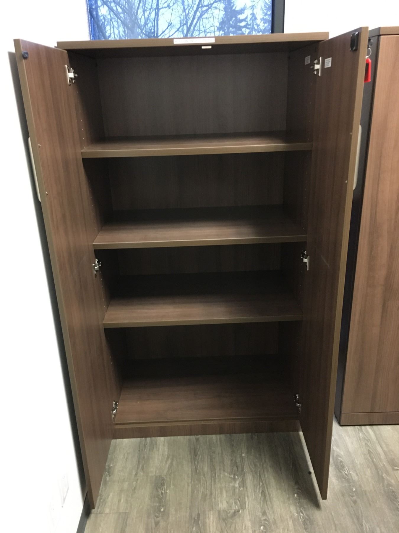 MODERN MOCHA FINISH 2 DOOR OFFICE STORAGE CABINET-APPROX 3FT ACROSS X 2FT DEEP X 5FT TALL