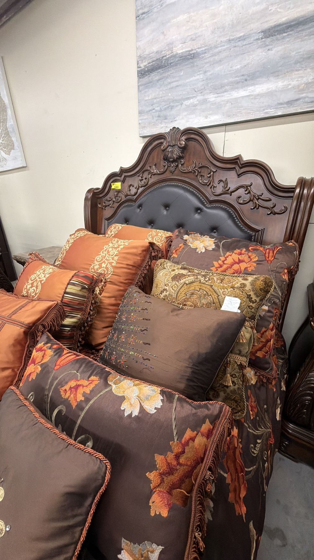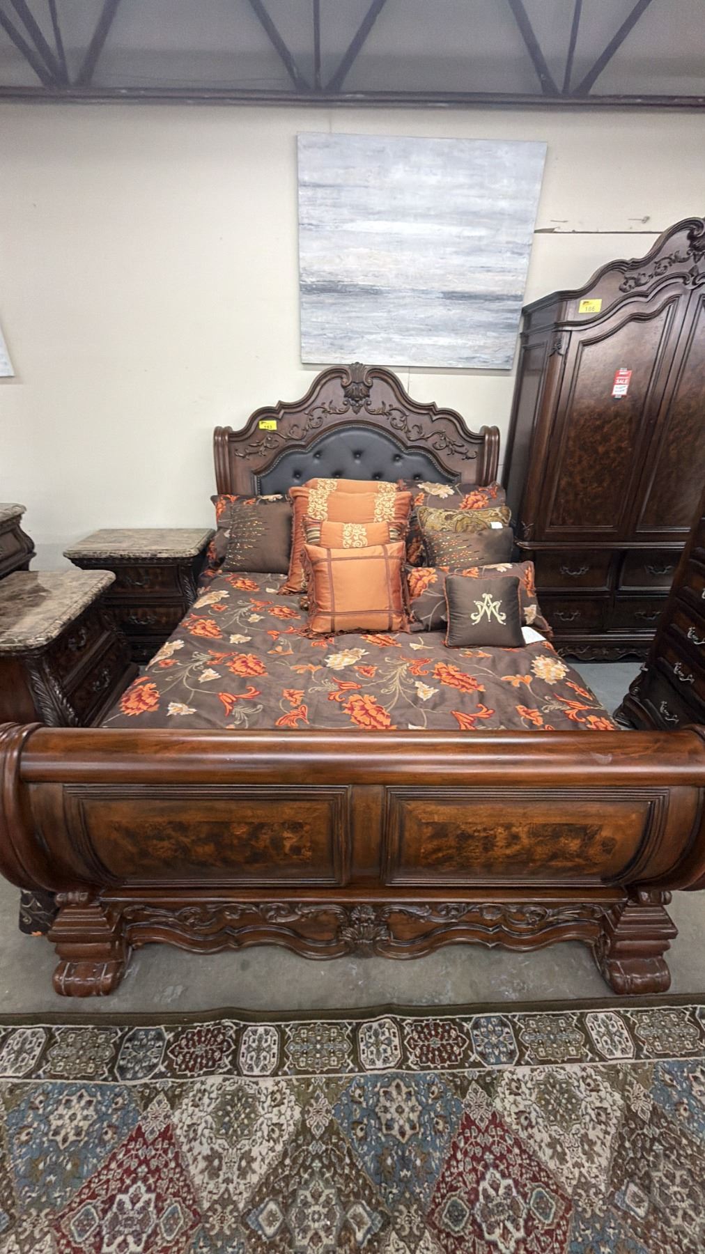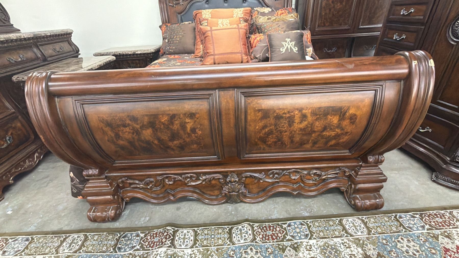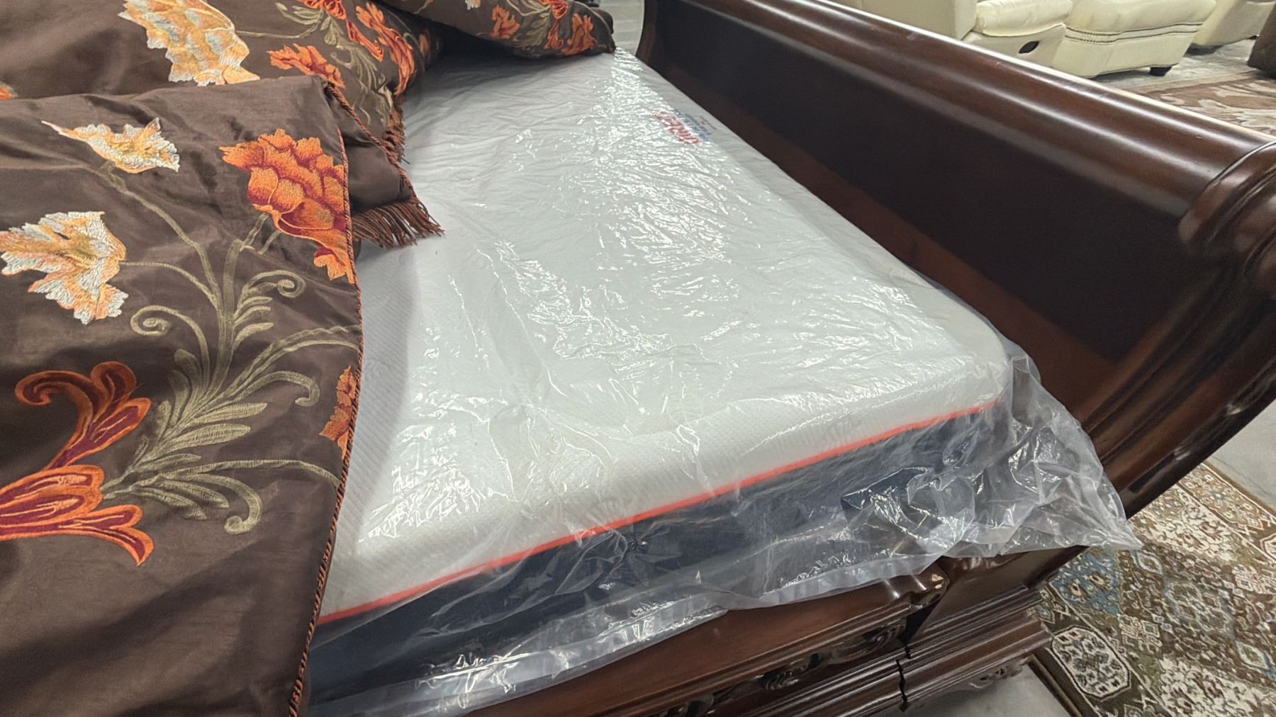 MODERN SINGLE SIZE SLEIGH BED WITH MATTRESS & THROW PILLOWS