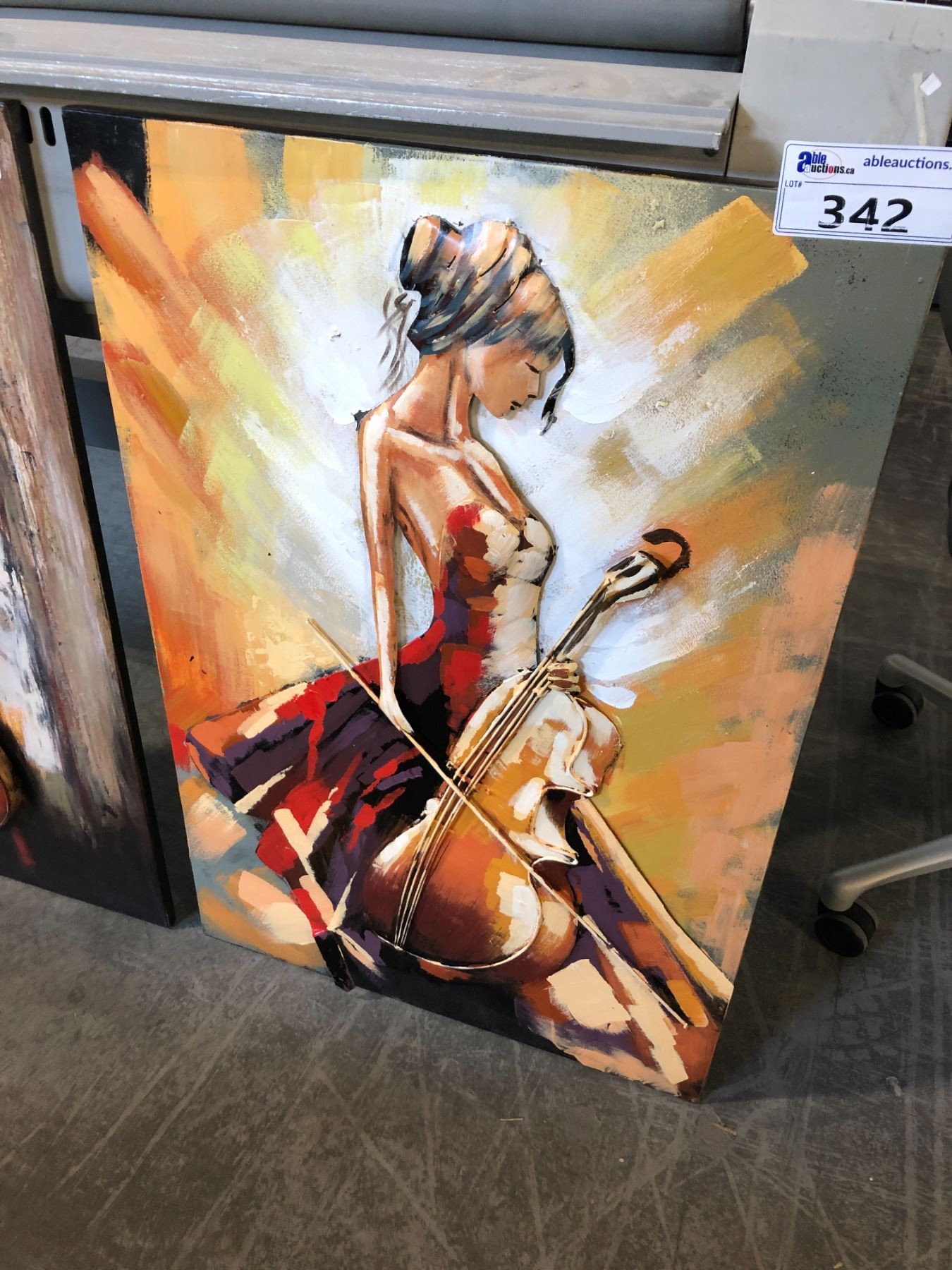 MODERN VIBES OIL ON METAL CELLO PLAYER 3D ART 24" X 36