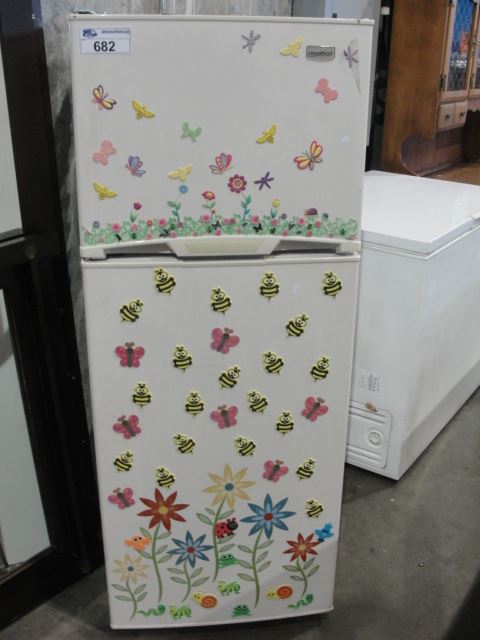 MOFFAT WHITE 2 DOOR APARTMENT SIZE REFRIGERATOR - PLUGGED IN AND WORKING