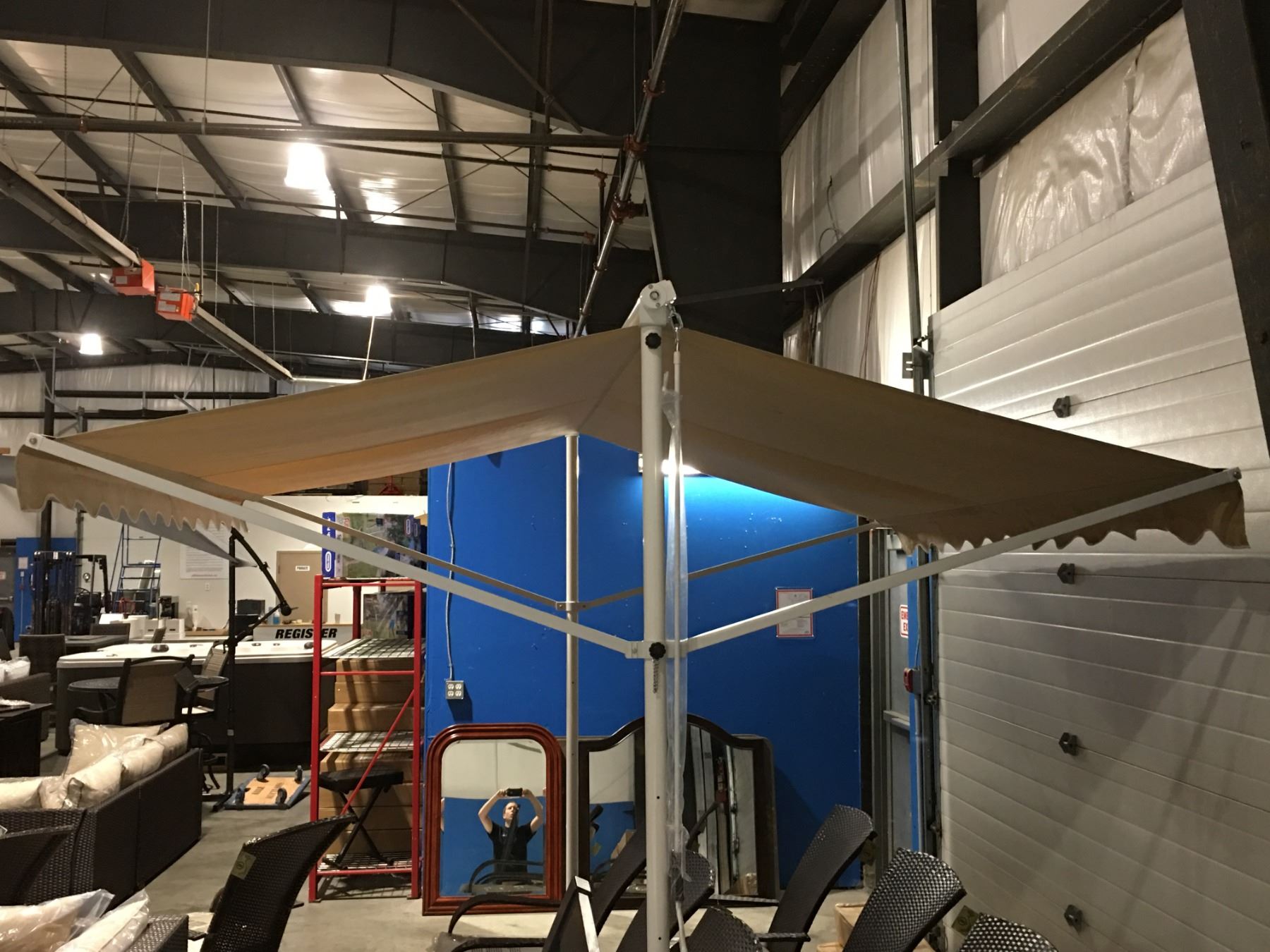 MONARCH ENTERPRISES WHITE FRAME CAPPUCCINO ACRYLIC RETRACTABLE OUTDOOR AWNING