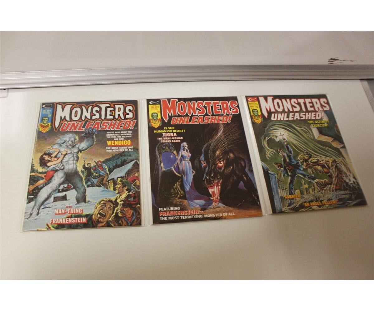 MONSTERS UNLEASHED HAGH GRADE NEAR COMPLETE SET. #1-2, 4,5,6,7,9,10,11 (1973-75) GEORGEOUS RUN, SHARP, NEWSSTAND FRESH. LOTS OF CGC CANDIDATES.  #1 IS A SOLID MID GRADE