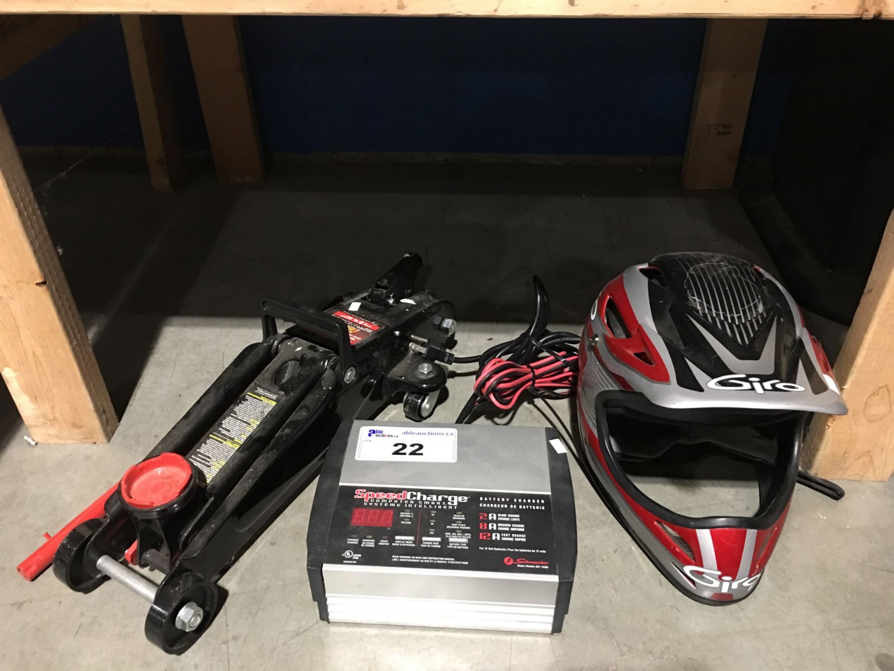 MOTOMASTER HYDRAULIC TROLLEY JACK, SPEED CHARGER & MOTOCROSS HELMET