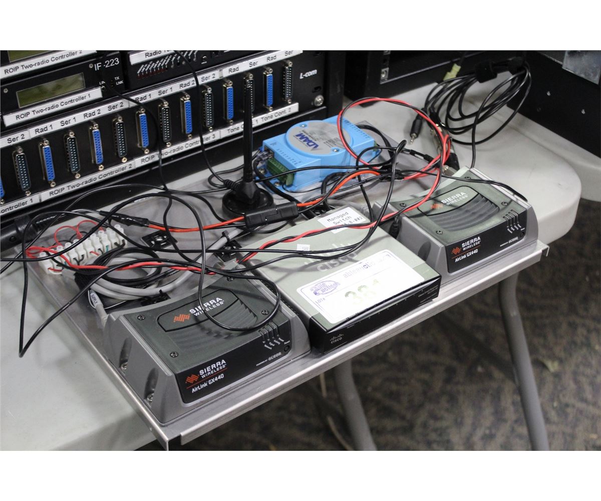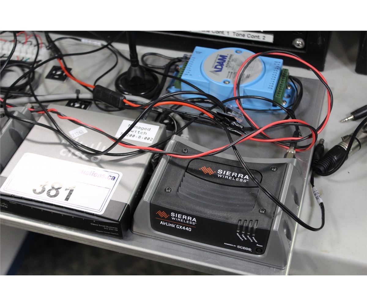 MOUNTING PLATE W/ 2X SIERRA WIRELESS AIRLINK GX440 WI-FI ROUTER, CISCO SMART SWITCH, ADAM-6066 DATA ACQUISITION MODULE AND CABLES