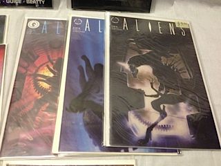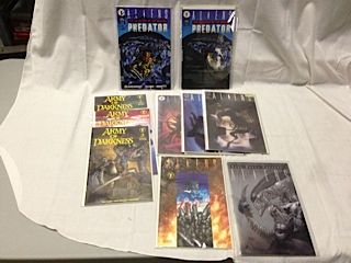 MOVIE COMICS: ARMY OF DARKNESS #1 THROUGH #3, ALIENS TRIBES, ALIENS PLATINUM EDITIONS, 2 COPIES ALIENS PREDATOR SIGNED WITH C.O.A.'S