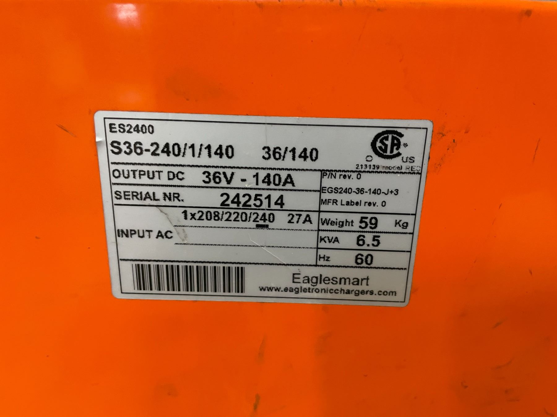 MRG ES 2400 S36-240/1/140 36V - 140 AMP COMMERCIAL INDUSTRIAL ELECTRIC FORKLIFT CHARGER