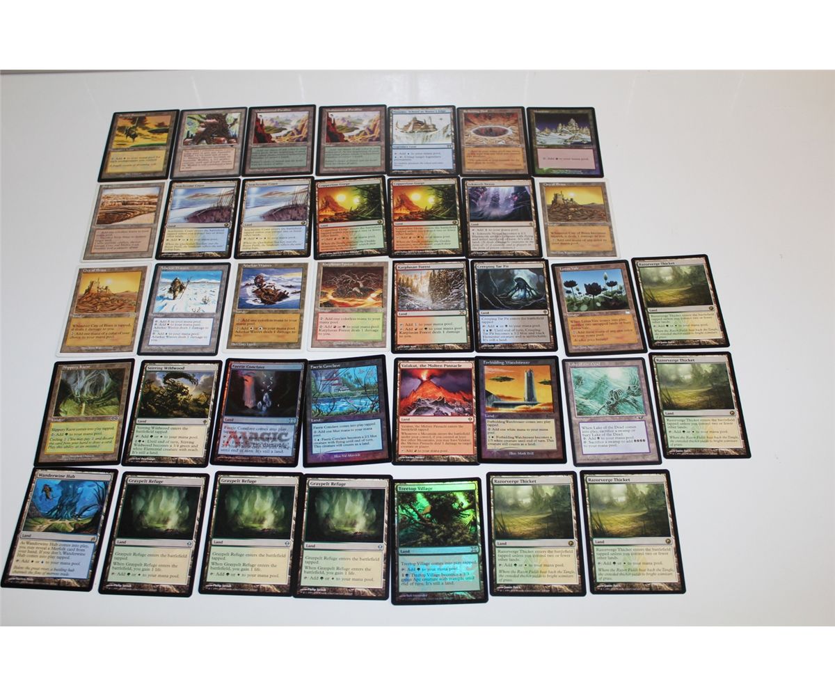 MTG- 37 NON BASIC LANDS INCLUDES, UNDISCOVERED PARADISE (X2), MINAMO, REFLECTING POOL, ARENA PROMO MOUNTAIN, STRIP MINE, SEA CHROME COAST (X2), COPPER LINE GORGE (X2) INK MOTH NEXUS, CITY OF BRASS (X2) MISHRA'S FACTORY SERRA'S SANCTUM AND MORE LIGHTLY PLAYED TO NM