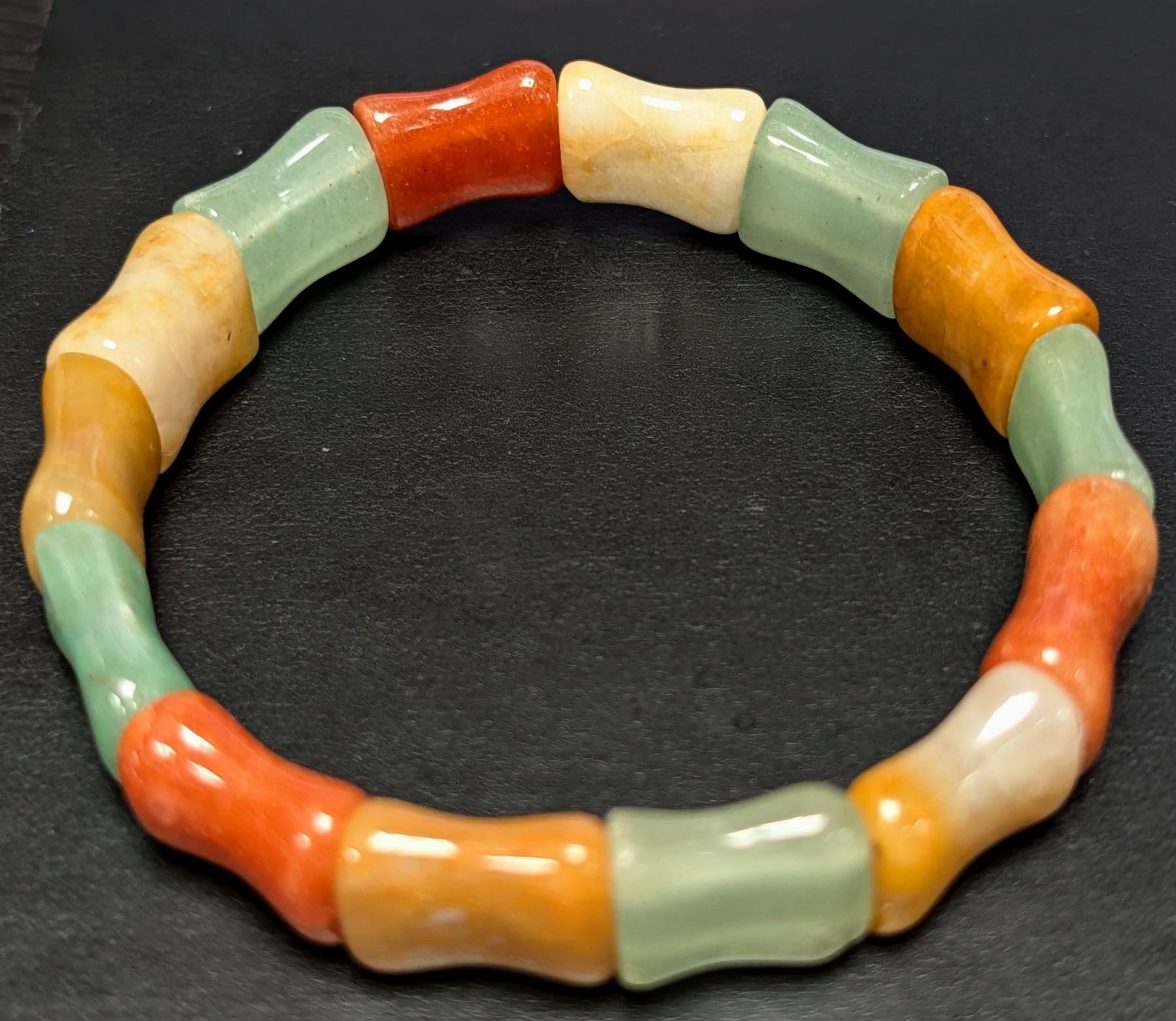 MULTI COLOR JADE FLEXIBLE BRACELET, SUGGESTED RETAIL VALUE $200