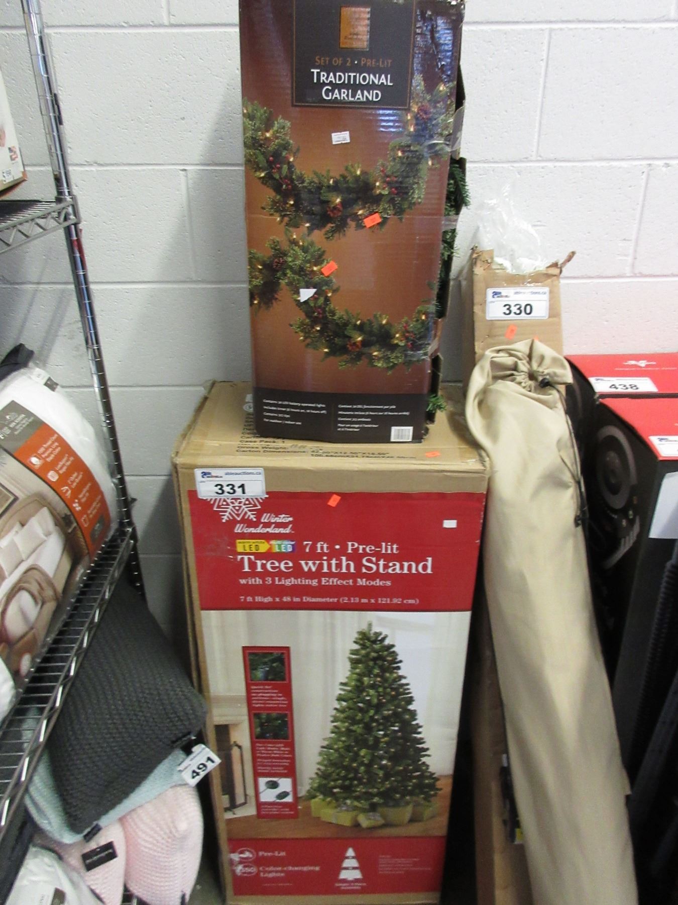MULTI-COLOURED LED 7' PRE-LIT TREE/PRE-LIT TRADITIONAL GARLANDS B1