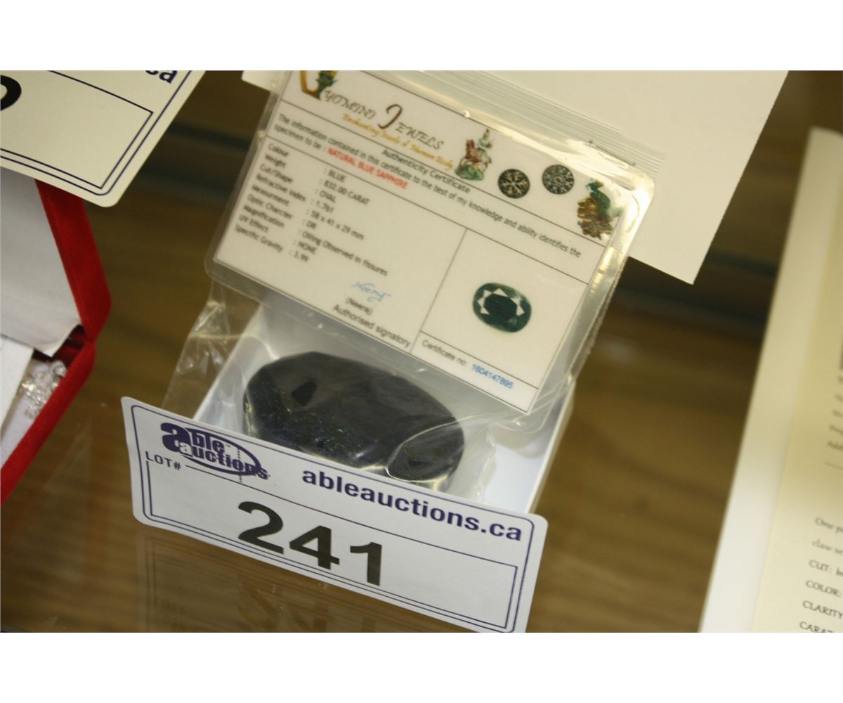 MUSEUM SIZE 832CARAT OVAL CUT BLUE SAPPHIRE GEMSTONE - INCLUDES CERTIFICATE