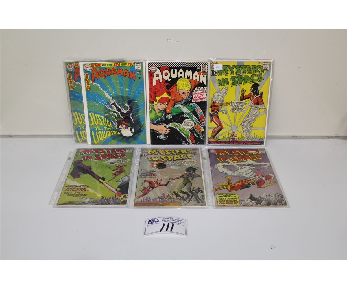 MYSTERY IN SPACE #71, #77, #78, #81 AND AQUAMAN #27, #38 X 2 IN FAIR TO VG CONDITION